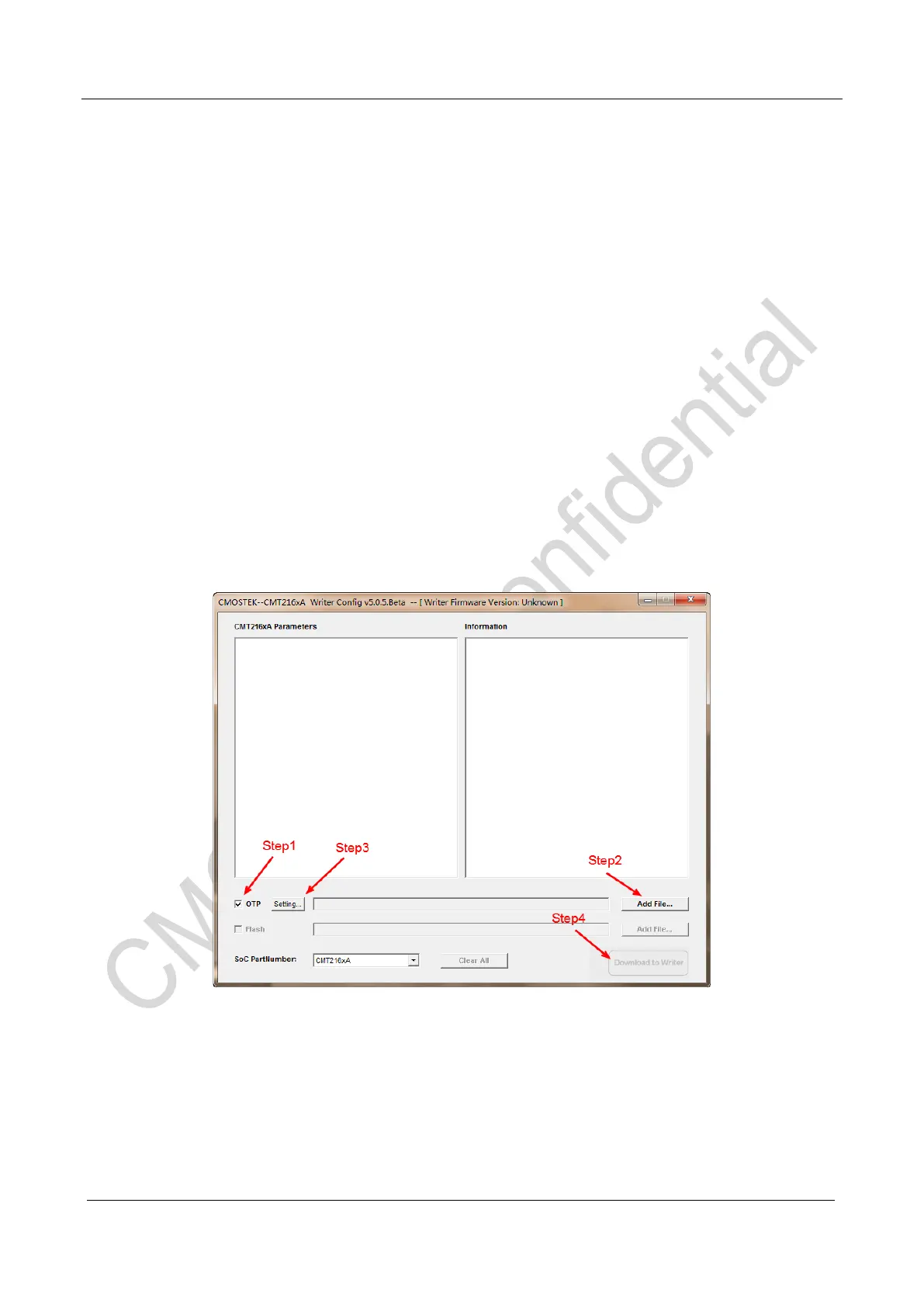 1. Select the “OTP”, which means the operation burning target is the import Hex file in OTP.