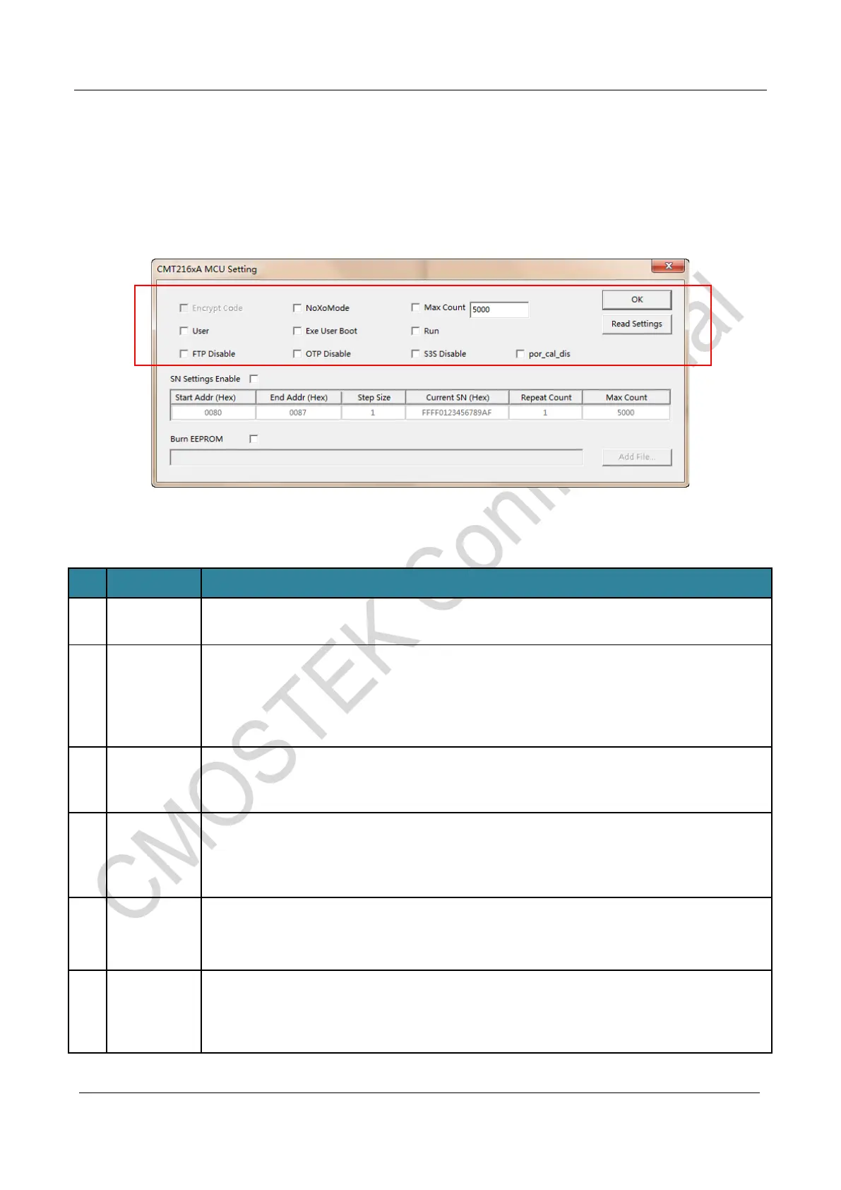 Figure 10. CMT216xA MCU Setting Interface(Burning option part)