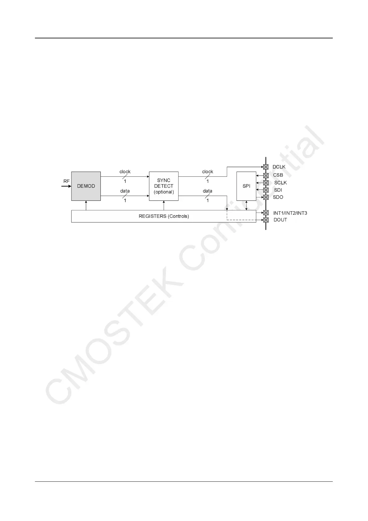 In direct mode, the data from the demodulator is sent directly to the external MCU via the DOUT pin. DOUT can be set as GPIO