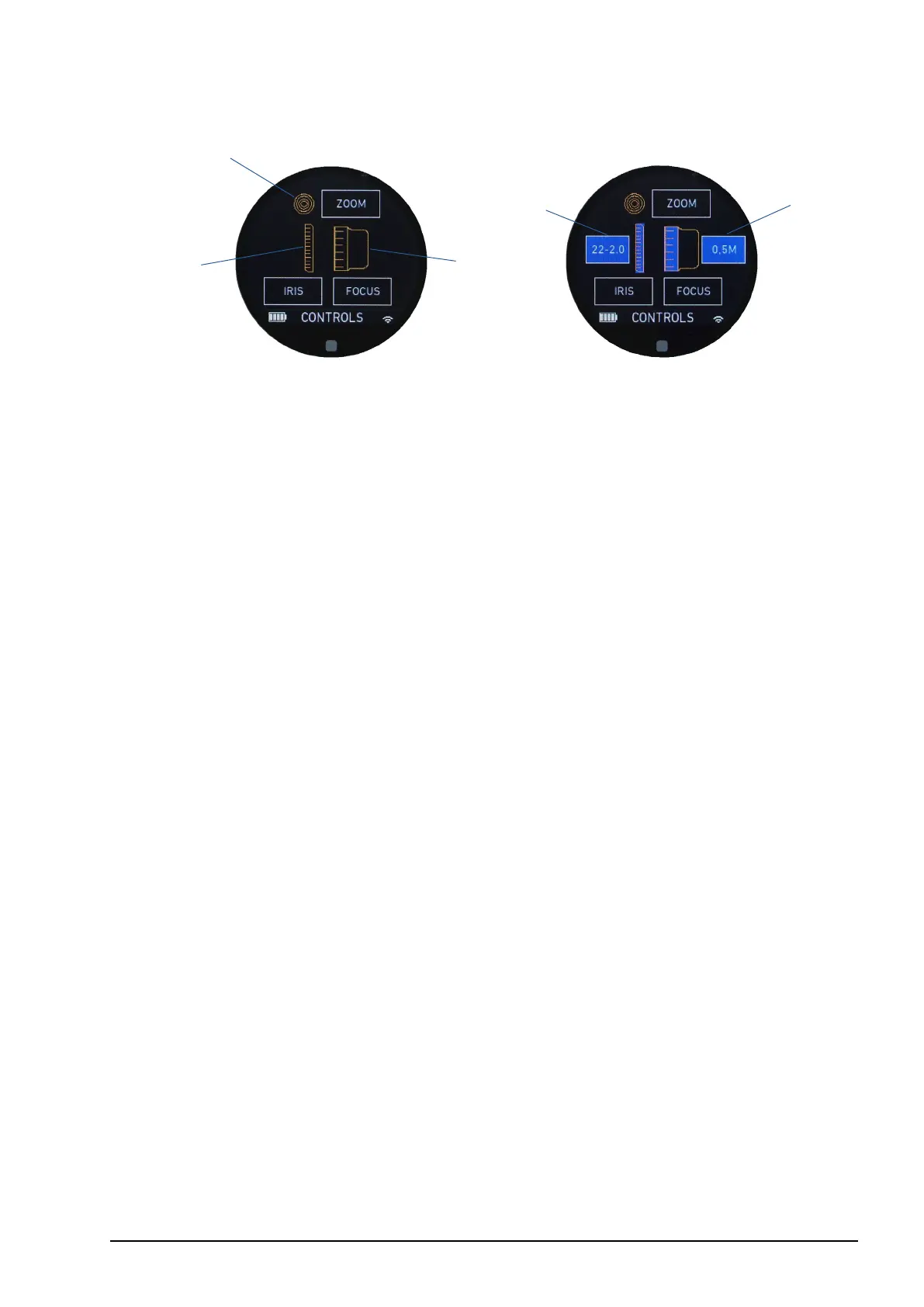 and joystick and their assigned axis; focus, iris and zoom. It also shows information about