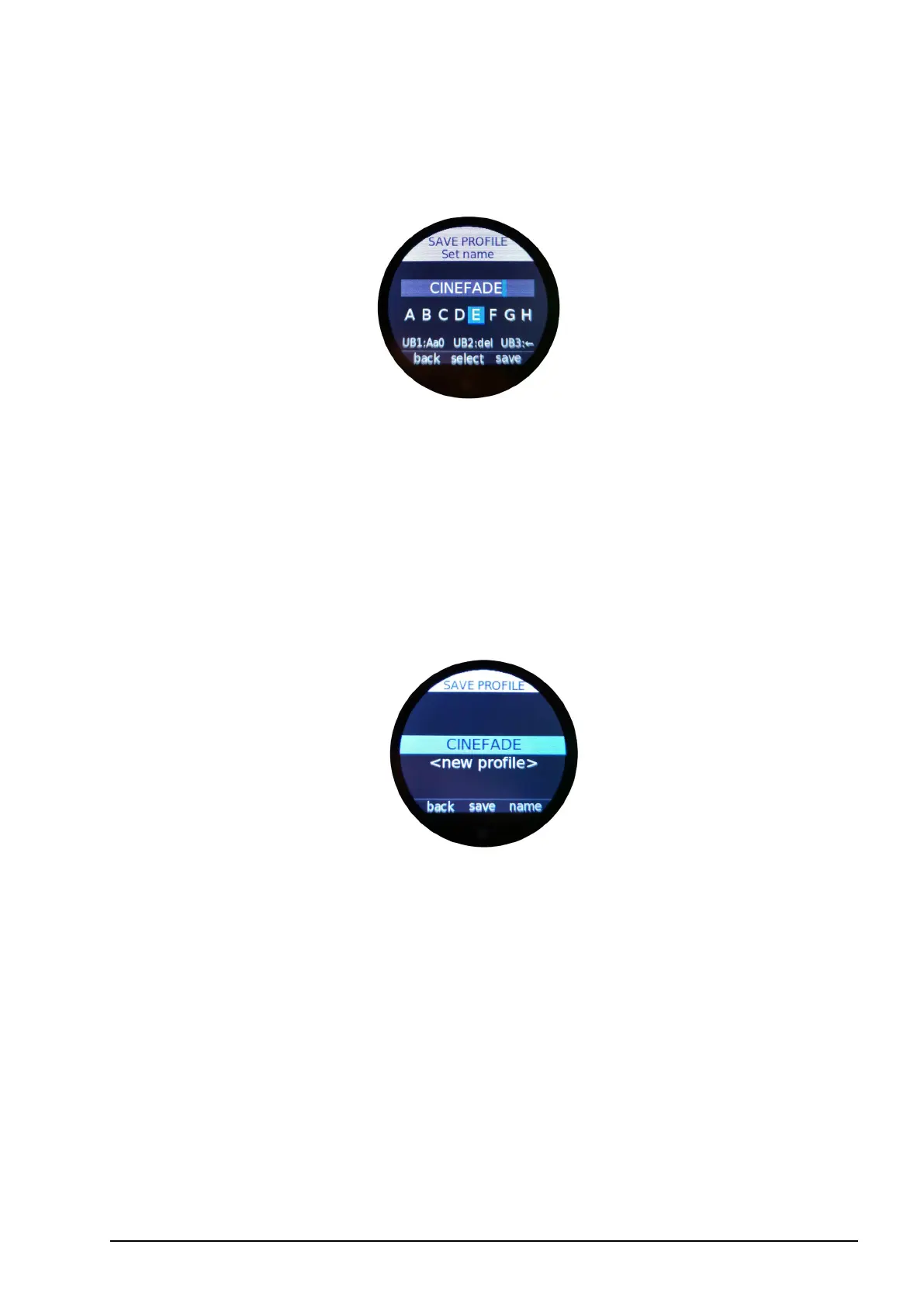 In order to create a new user prole, select “<new prole>” and press “name” (MB3). To