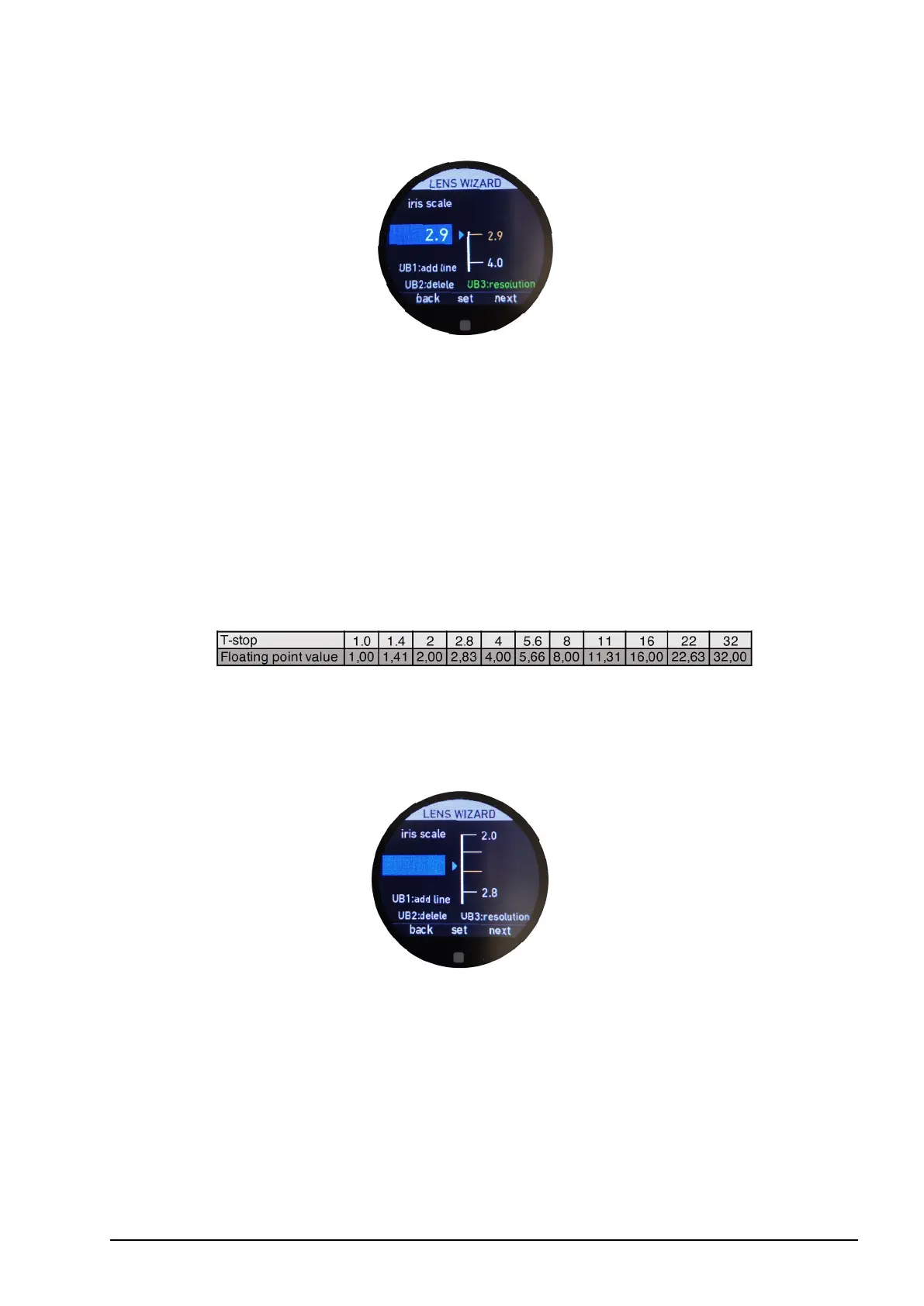 Note: Only activate the resolution function (UB3) when creating an open iris value for example