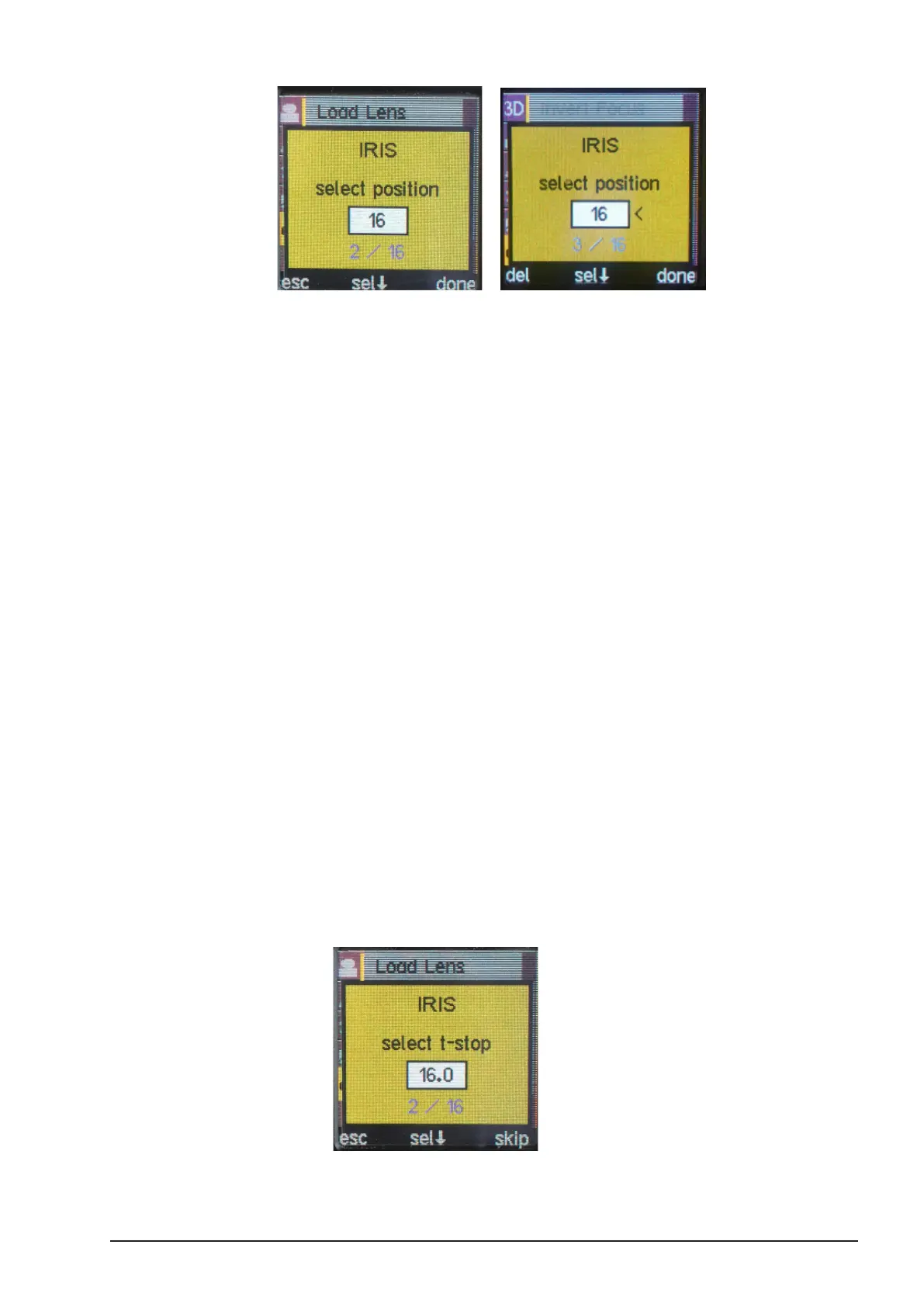 the lens to this value and press “sel” to conrm.