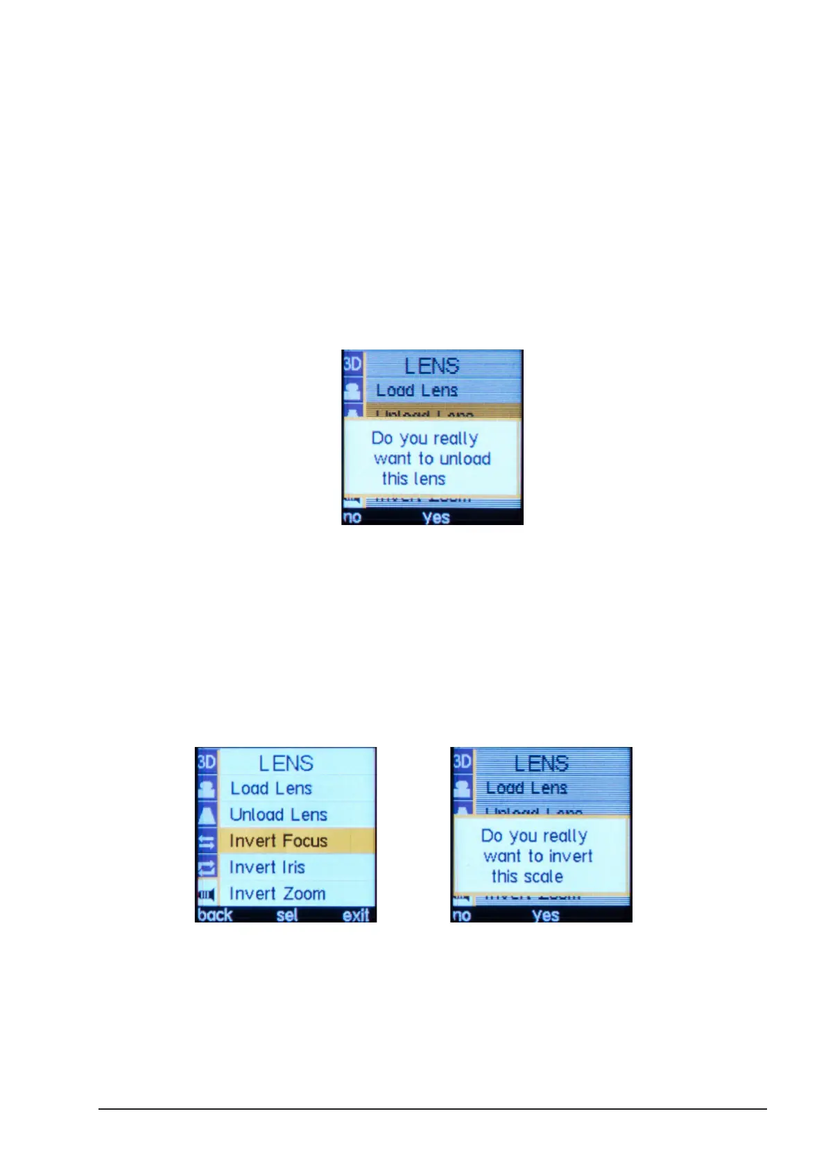 ■Select LENS, “Invert Focus” or “Invert Zoom” or “Invert Iris” respectively.
