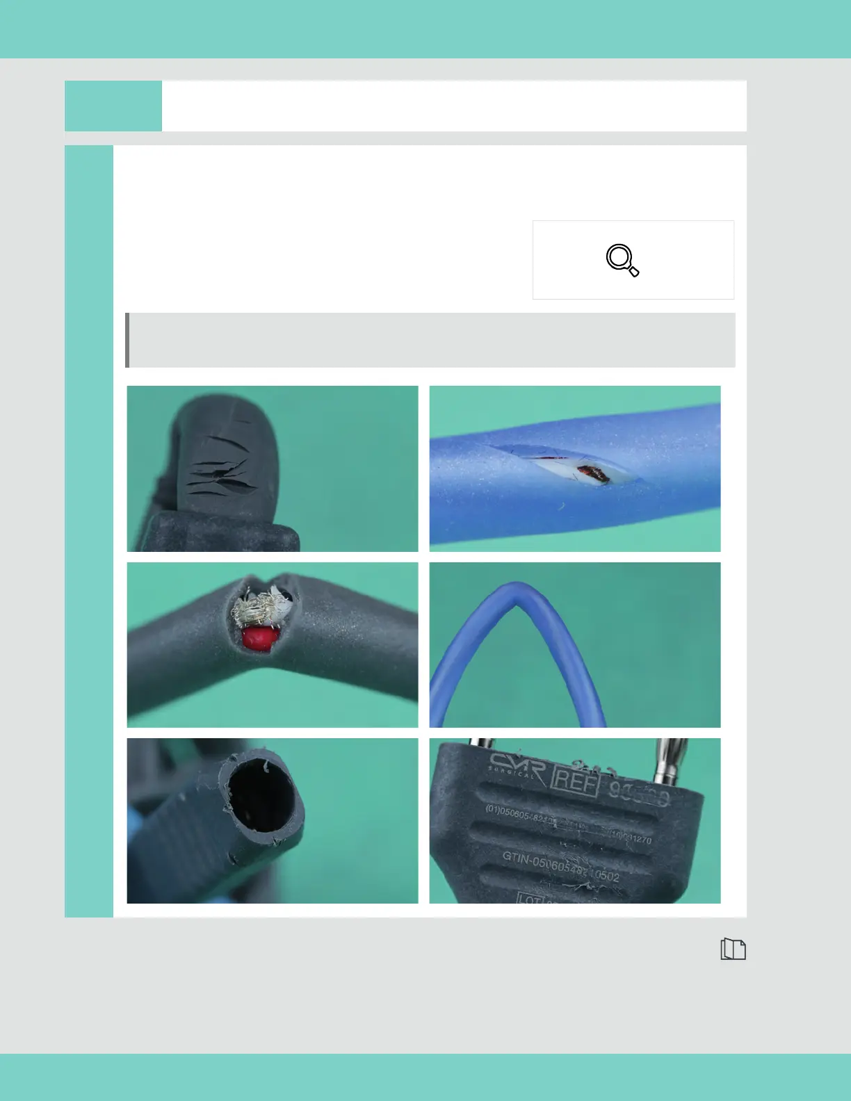 2. Use a magnifying glass to inspect the cable for damage. Check for: