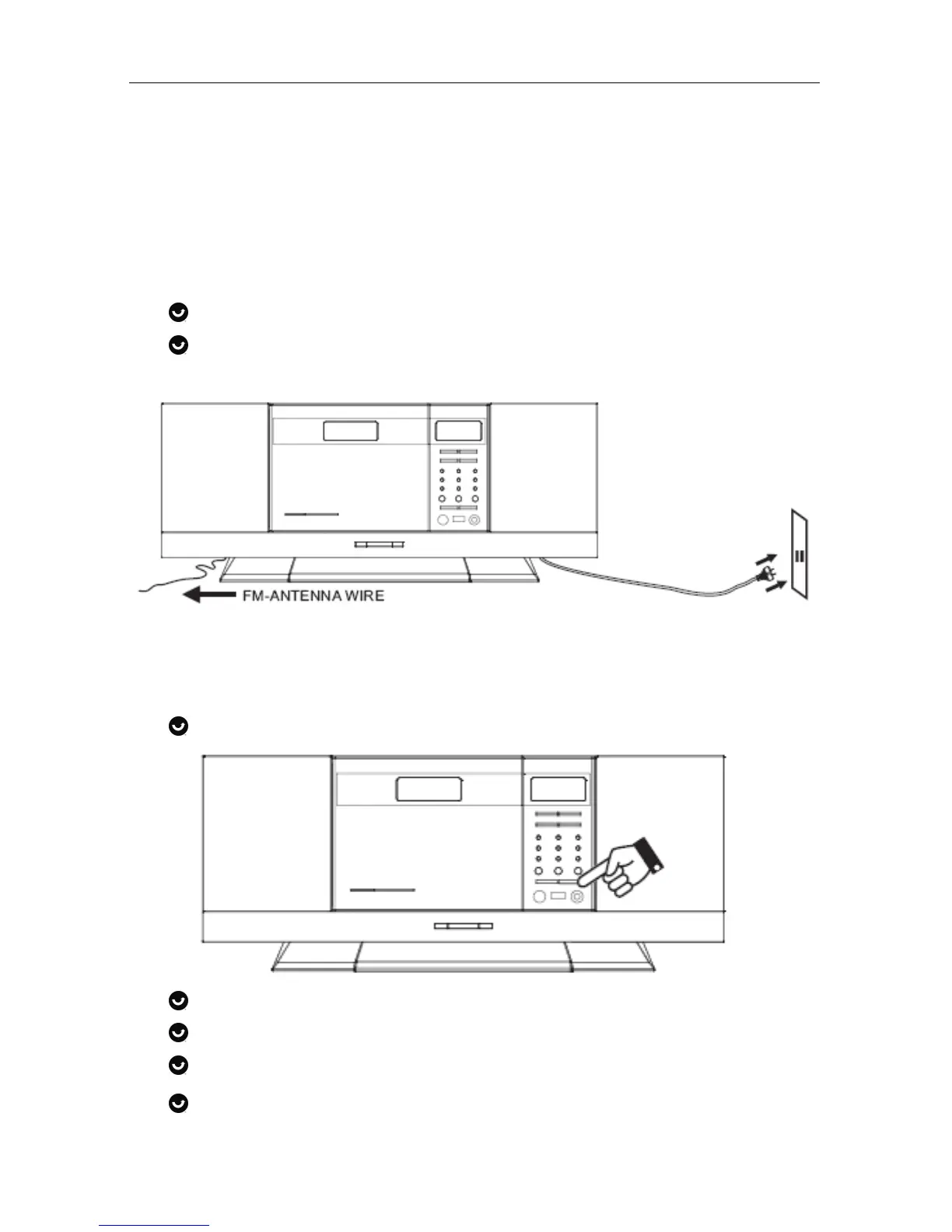 Plug AC-cord into wall socket & unwrap the FM-antenna