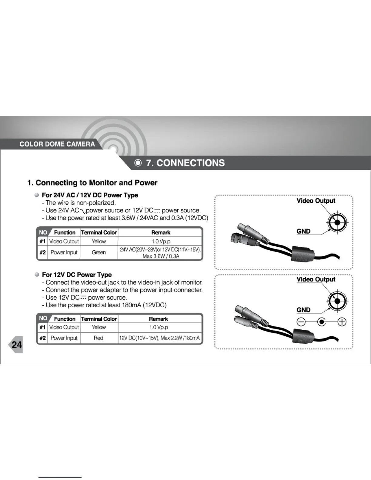 CNB DBM-24VF - CONNECTIONS - MONITOR AND POWER; 24 V AC;12 V DC Power Connection; 12 V DC Power Connection