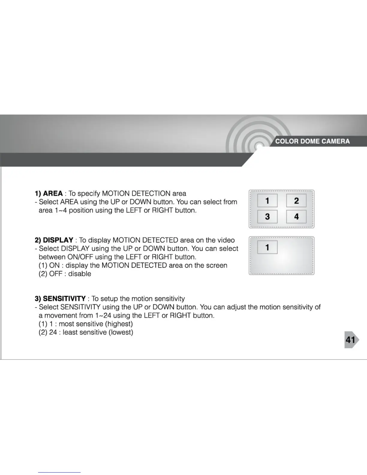 CNB DBM-24VF - OPERATING CAMERA - MOTION DETECTION DETAILS; Motion Detection Area Specification; Motion Detection Display; Motion Sensitivity Adjustment