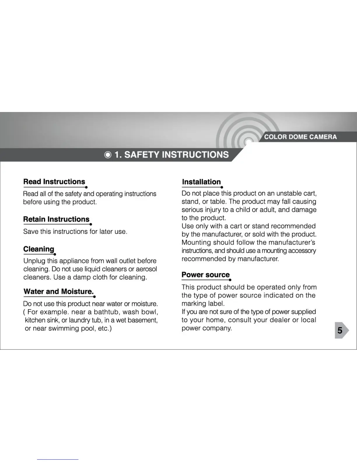 CNB DBM-24VF - SAFETY INSTRUCTIONS; Read and Retain Instructions; Cleaning and Water Precautions; Installation and Power Source Guidelines