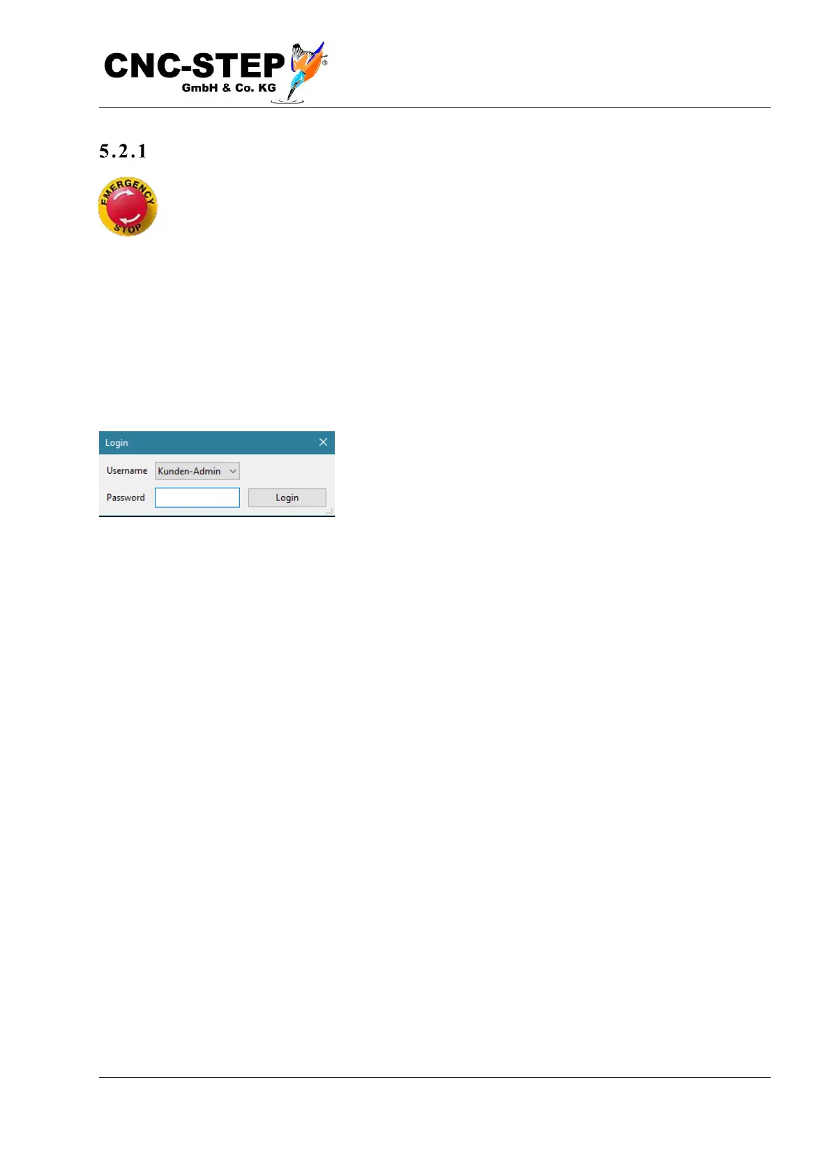 "Emergency Stop". Only with "OK" all functions are enabled.
