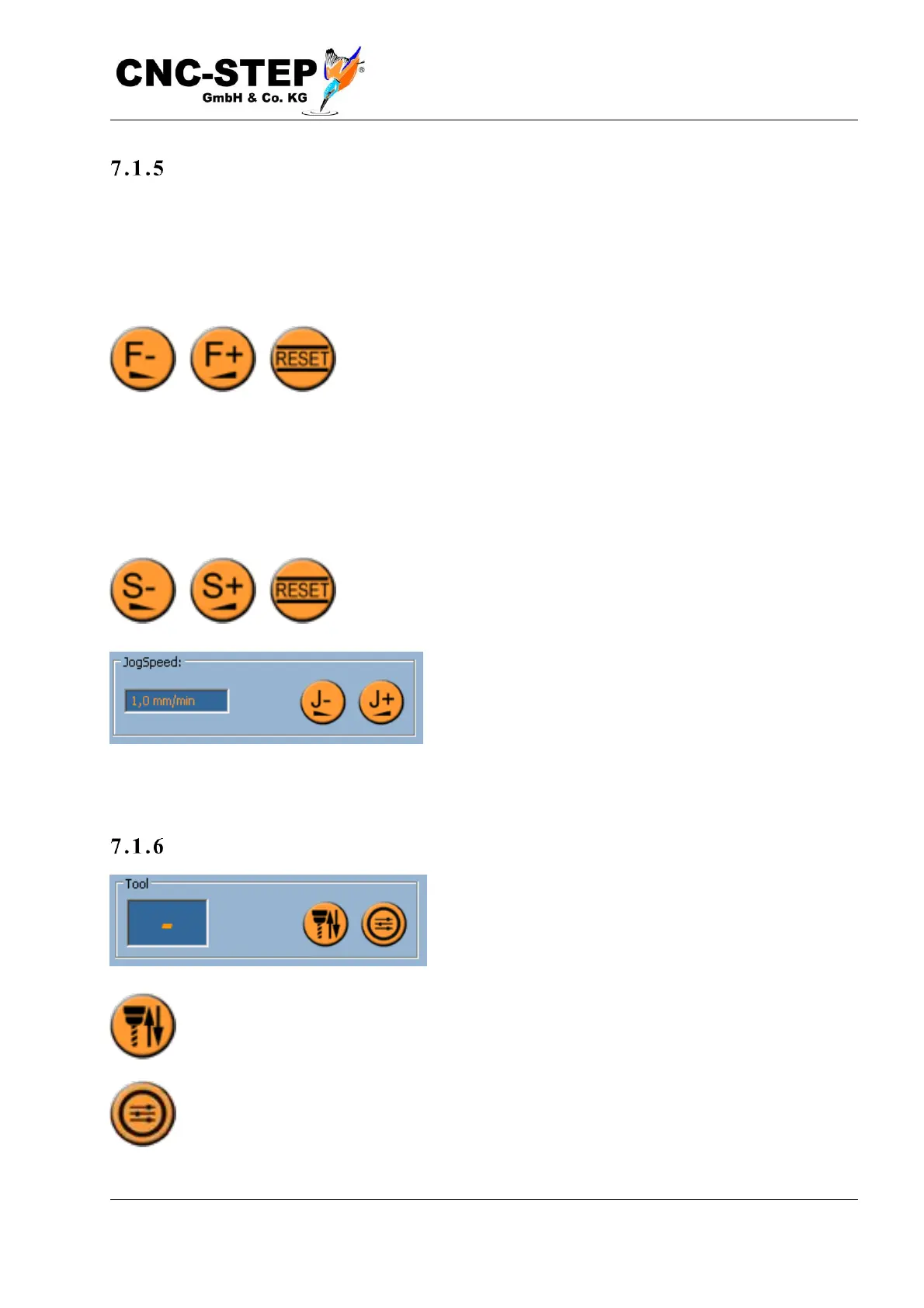 These buttons decrease or increase the set jog speed, which is shown in the display between these