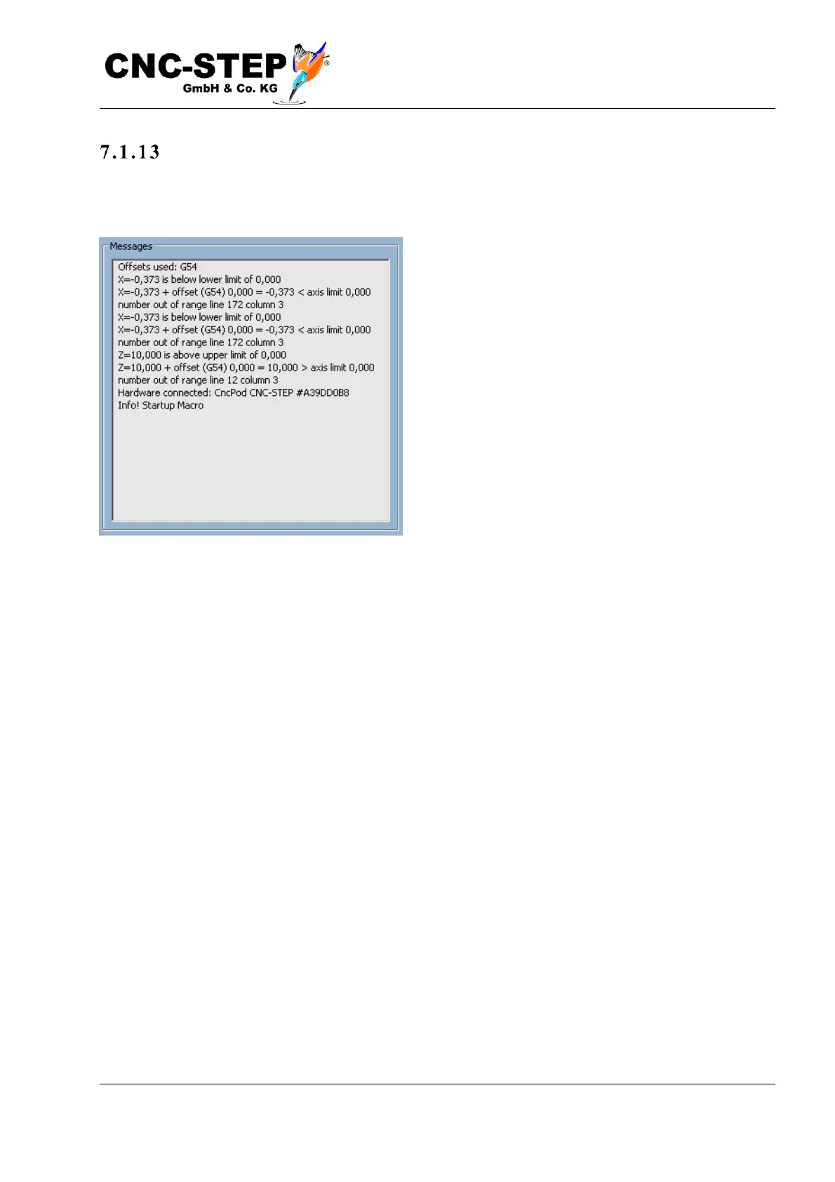 CNC-Step KinetiC-NC - Message Window