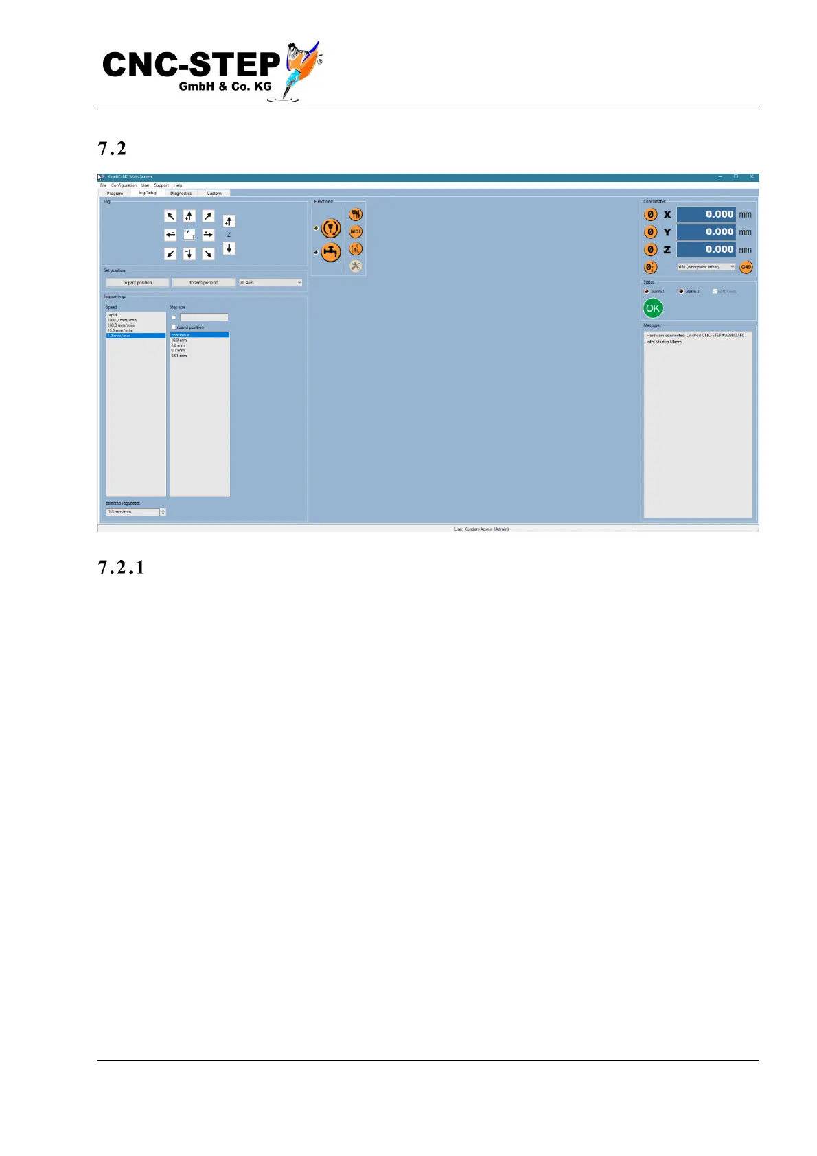 (jog) are available. The buttons with the arrows start directly a drive of the associated axis in the