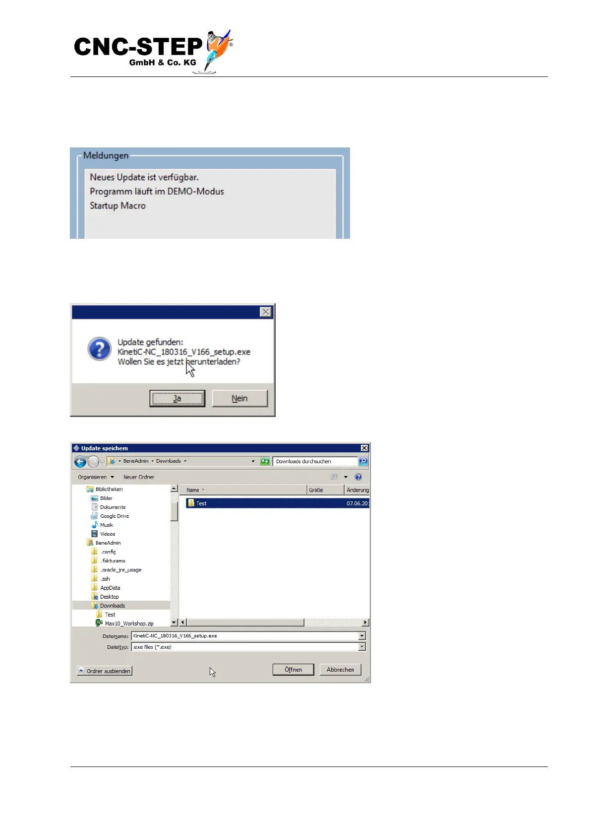 The update process is started via the menu item