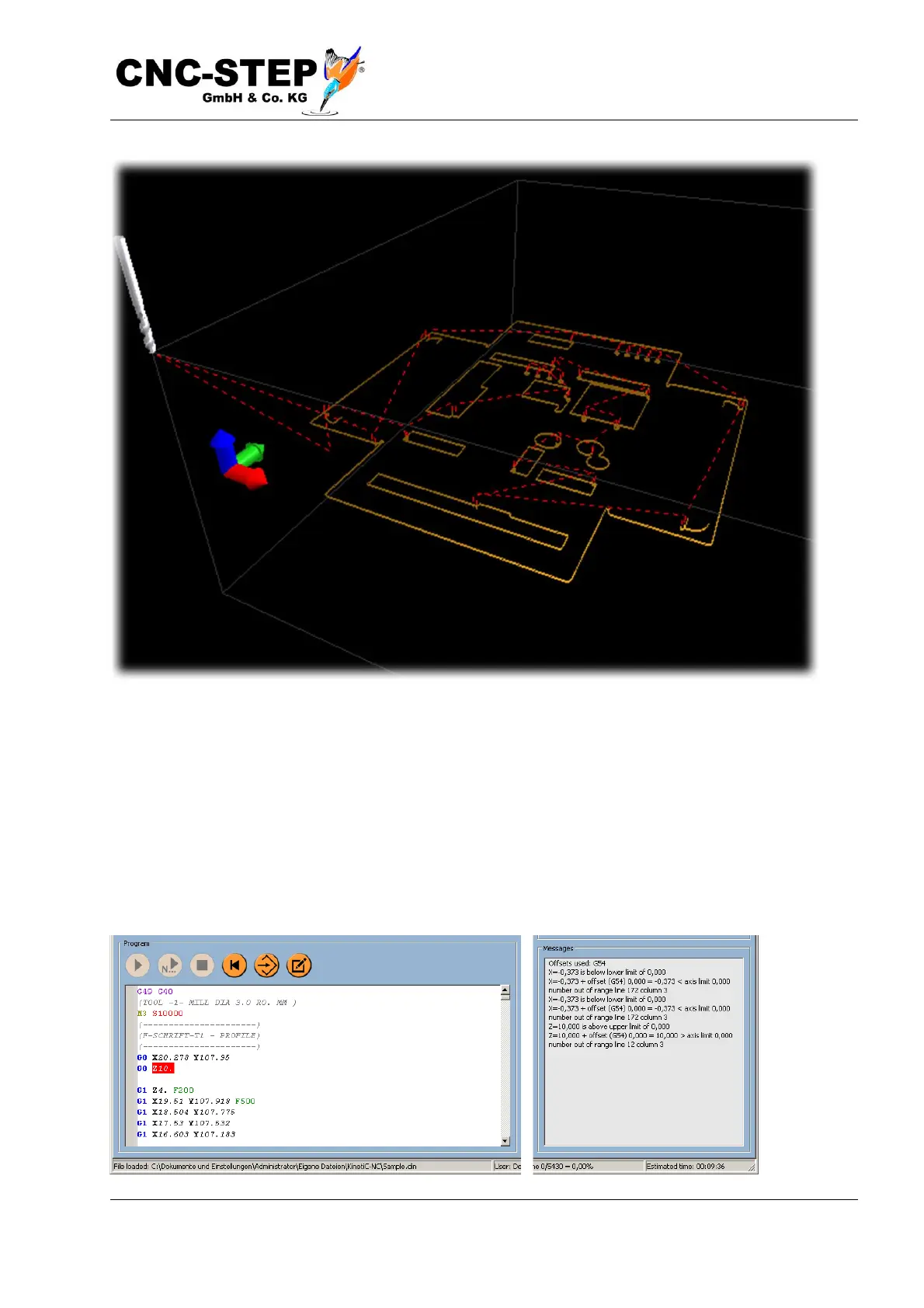 paths along the contour are normally displayed in green (possibly with different tools in other