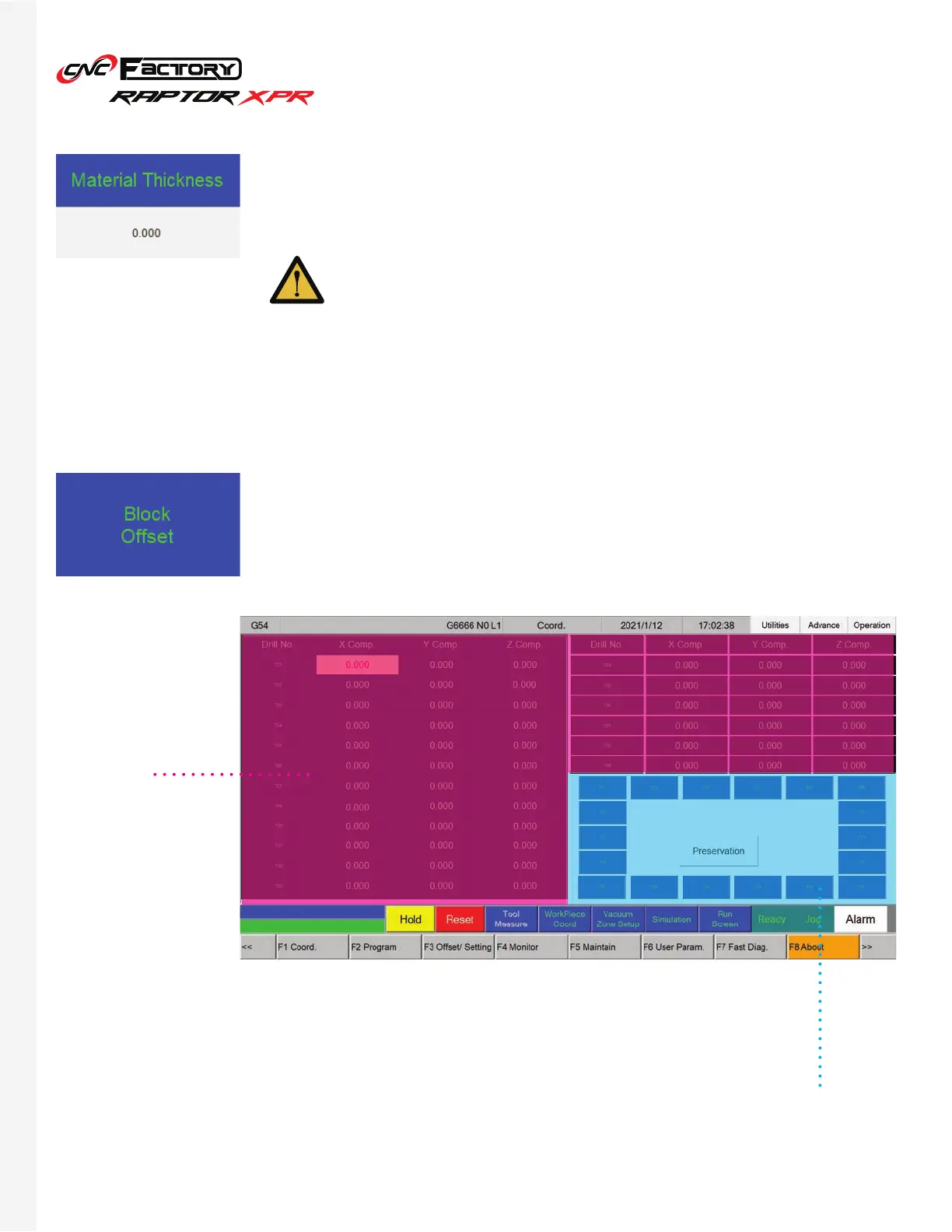 Step-by-Step chapter at the end of this manual for Adjusting Drill Block Offsets.