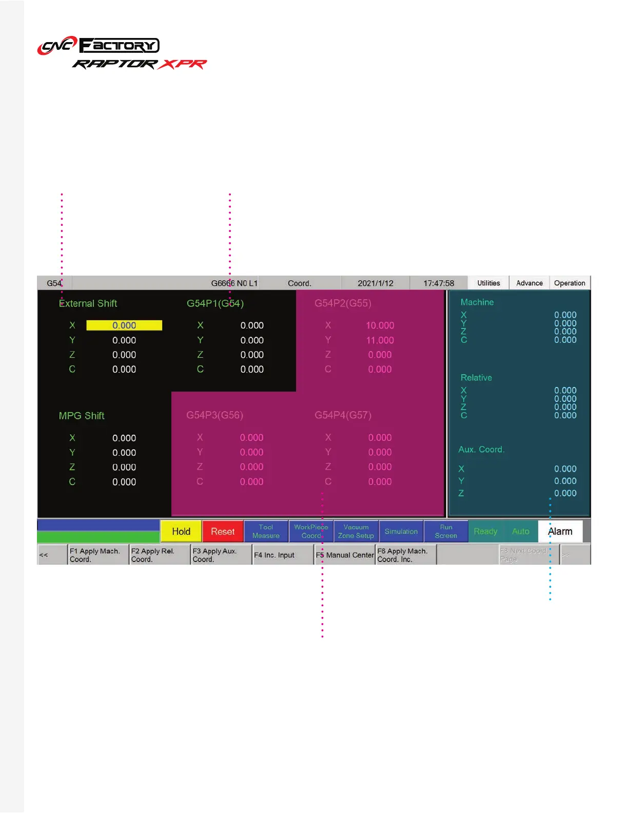 The Workpiece Coordinates Screen lets you use alternate workpiece starting points, instead of your default G54
