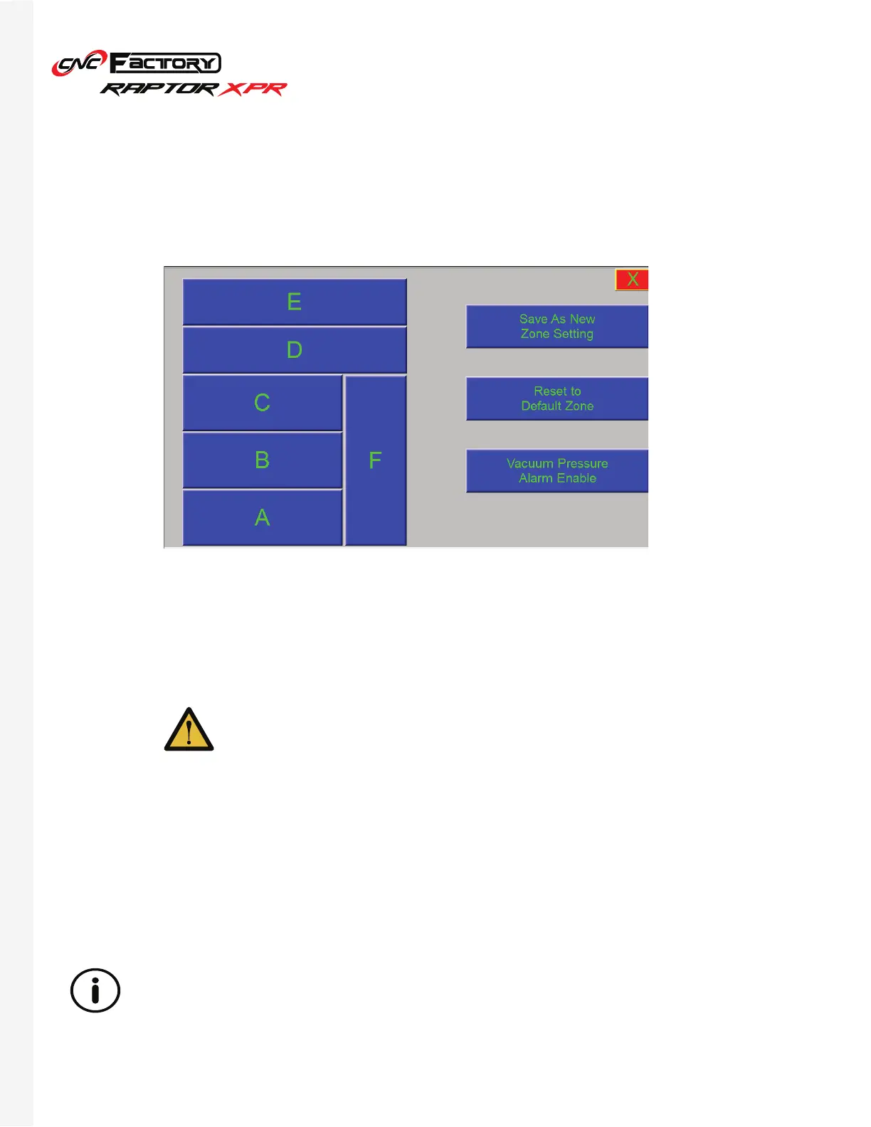 Vacuum Zone Setup Screen
