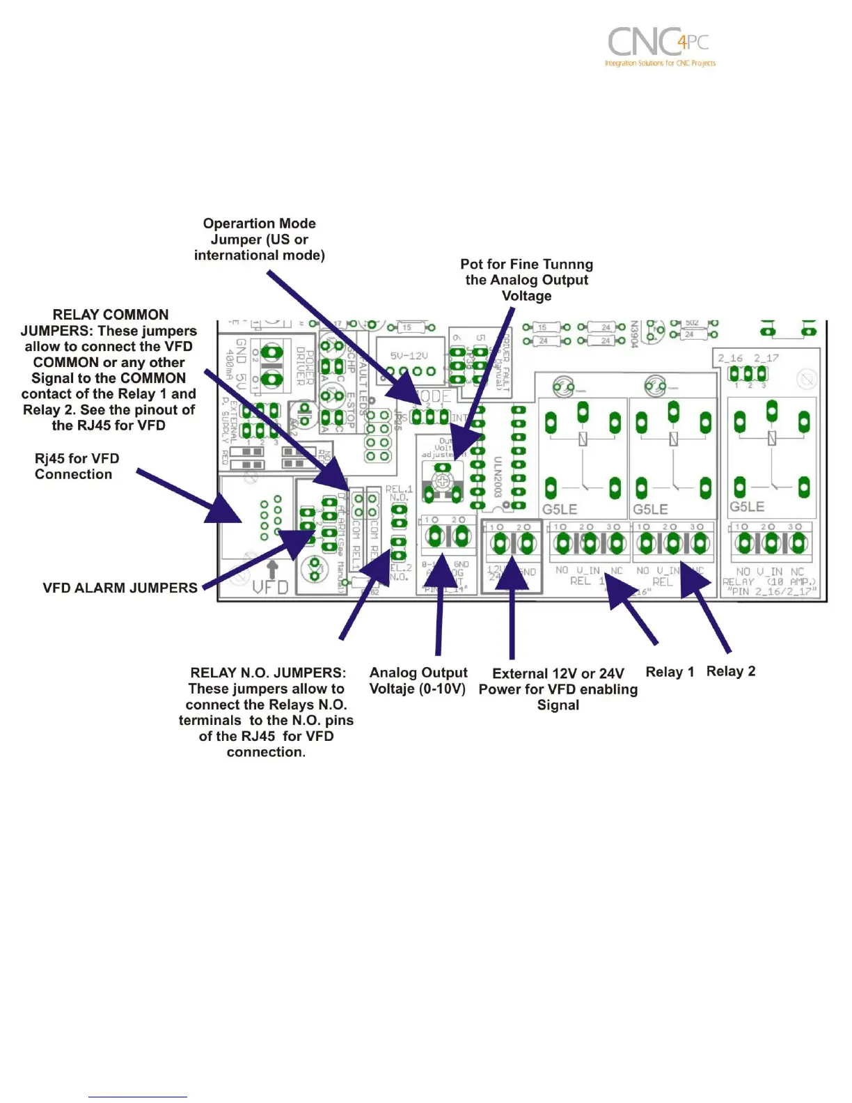 VFD Connection and configuration jumpers
