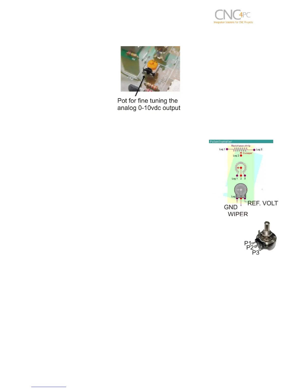 Connect the analog output to the wiper connection of the potentiometer (P2).