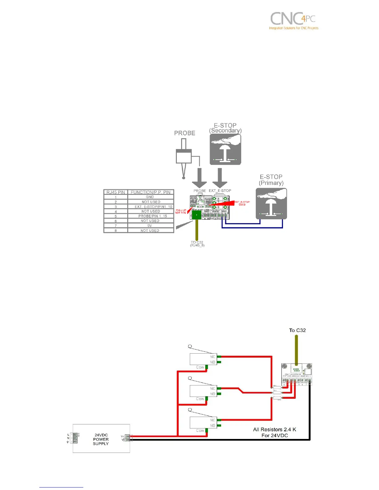 Note: The primary E-stop can be connected to C32 E-Stop terminals or to the C48 E-Stop input