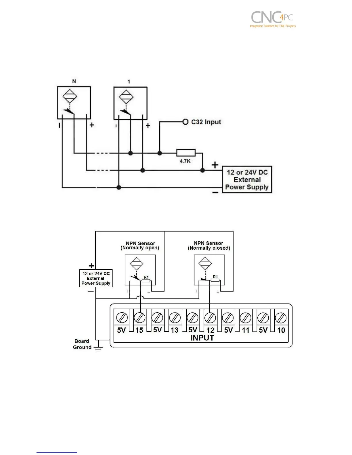 Wiring diagram to connect NPN proximity sensors with internal pull up resistor
