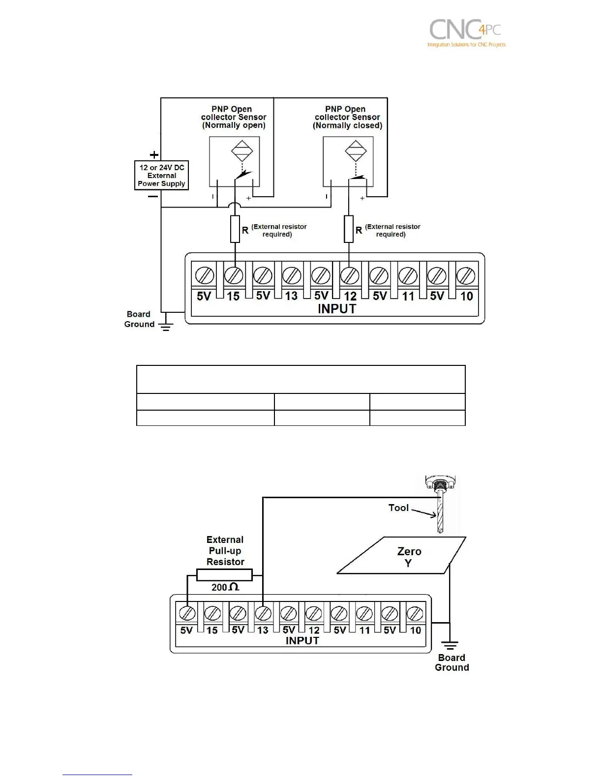 Table 15 R value to Connect PNP open collector proximity sensor with the C33.