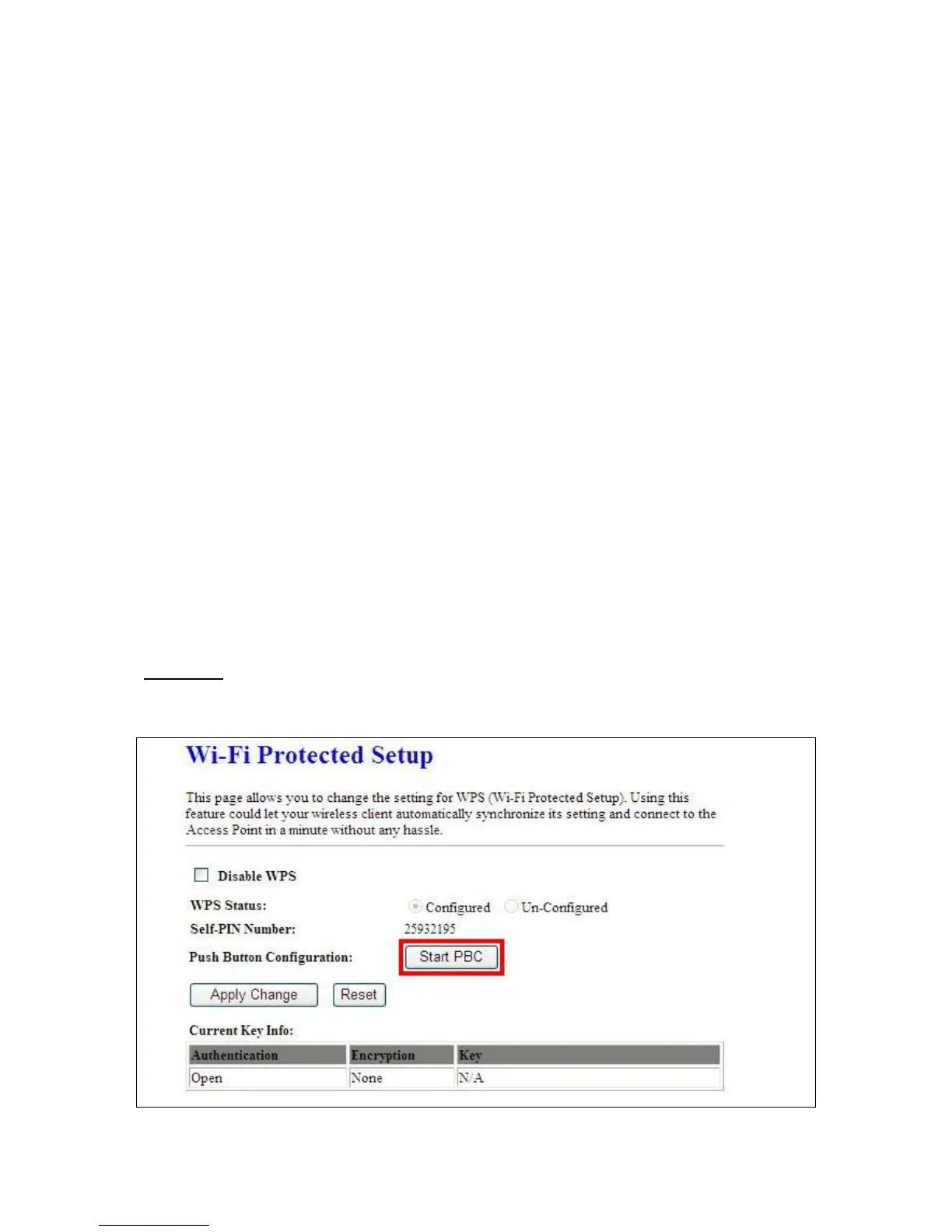On PBC model, users push the WPS button to activate the function, and then the wireless client must