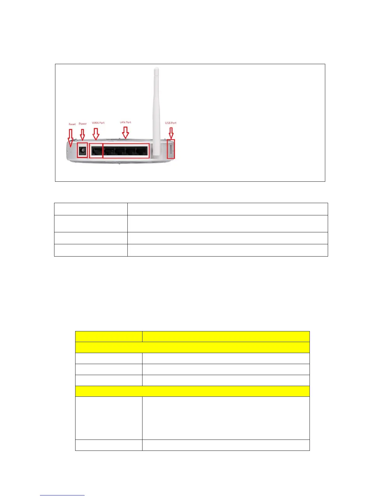 The following table shows the technical specifications of the wireless router.