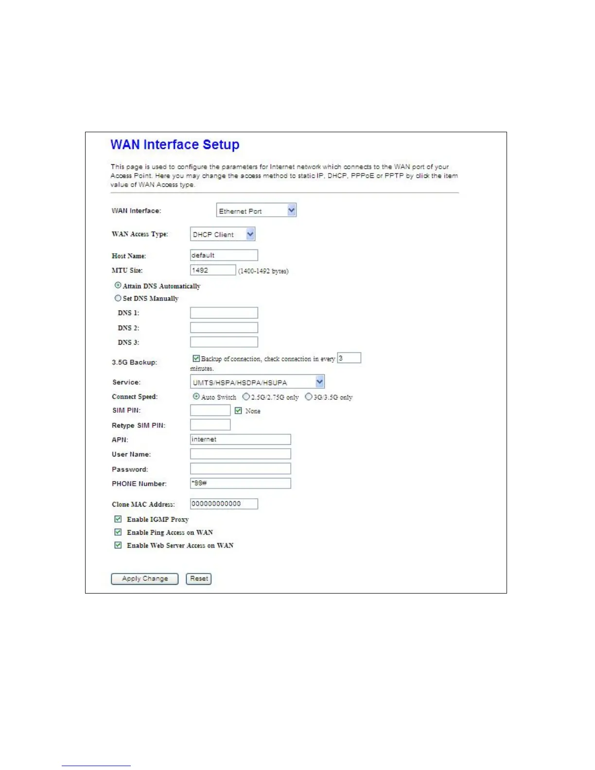 4.1.1.1 WAN Interface Ethernet Port