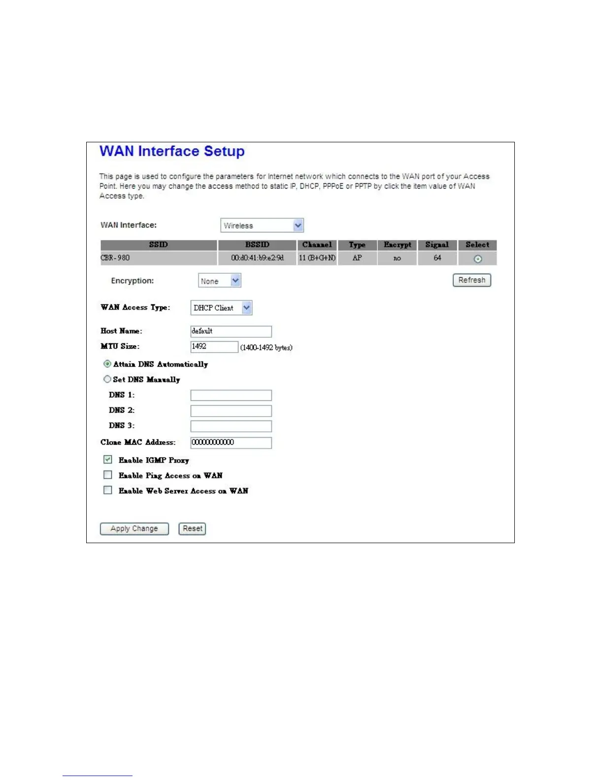 CNET CQR-981 - Wireless WAN Interface Setup