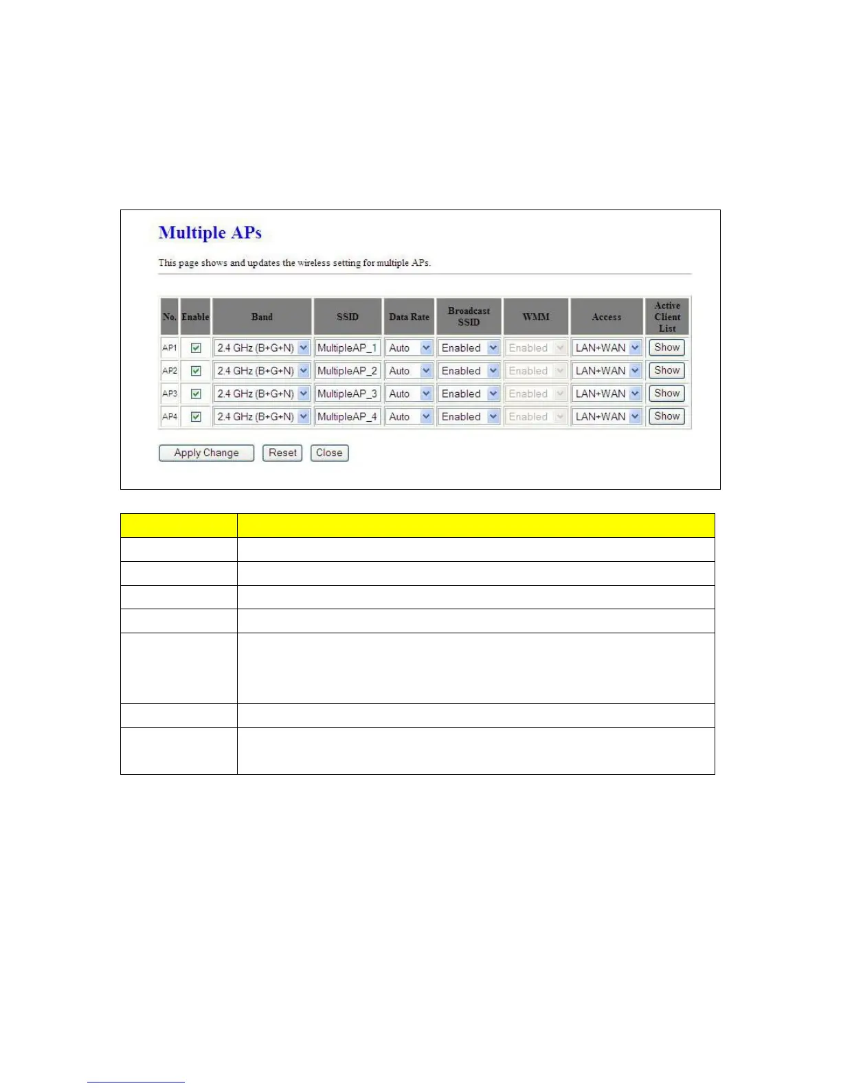 Multiple APs provides users another 4 different SSIDs for connection. Each SSID could be set with