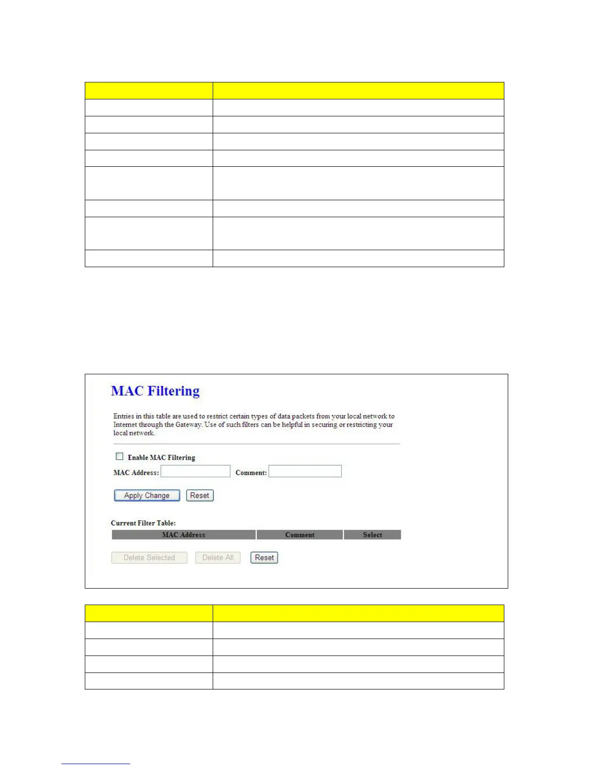 Please select Enable MAC Filtering to filter MAC addresses