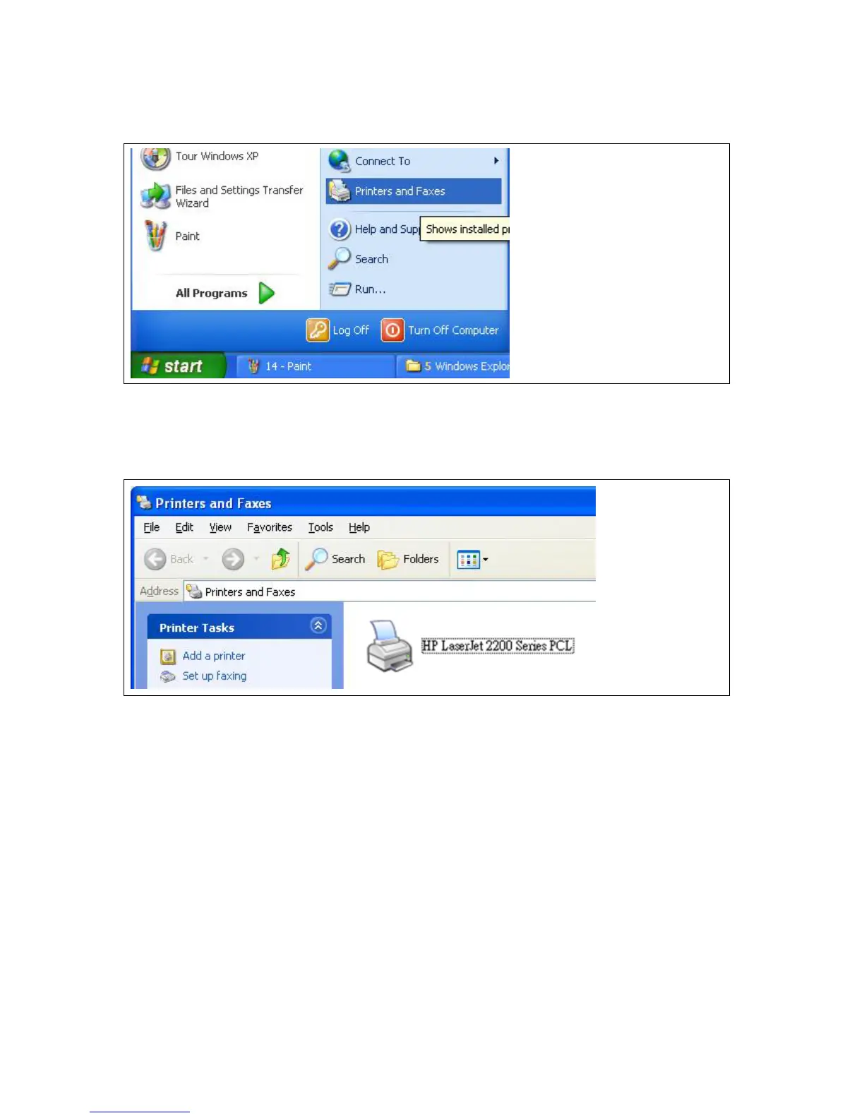 Please go to Start > Printers and Faxes to add a printer.