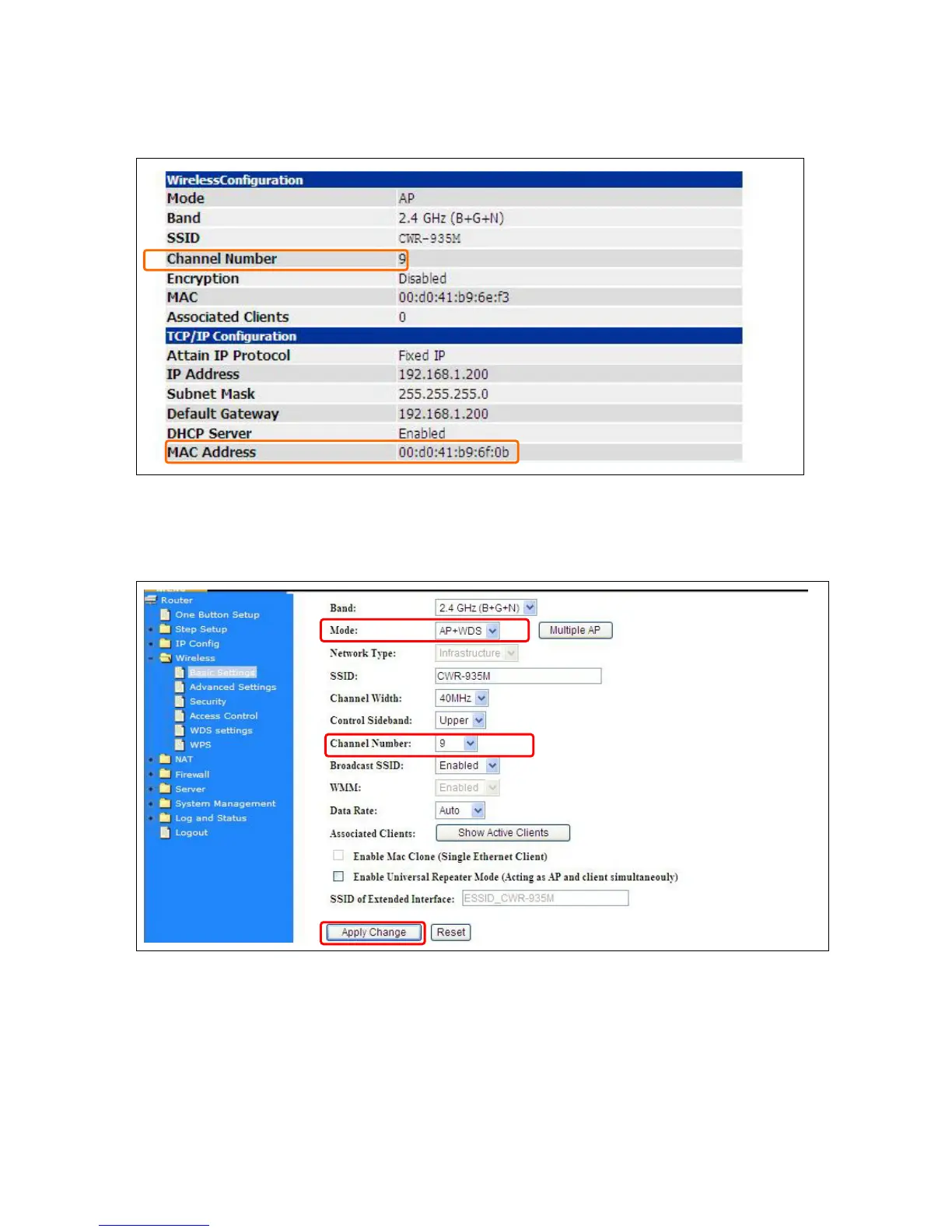 (2). Enter the Wireless Basic Settings page, select AP+WDS mode, and then select the Channel