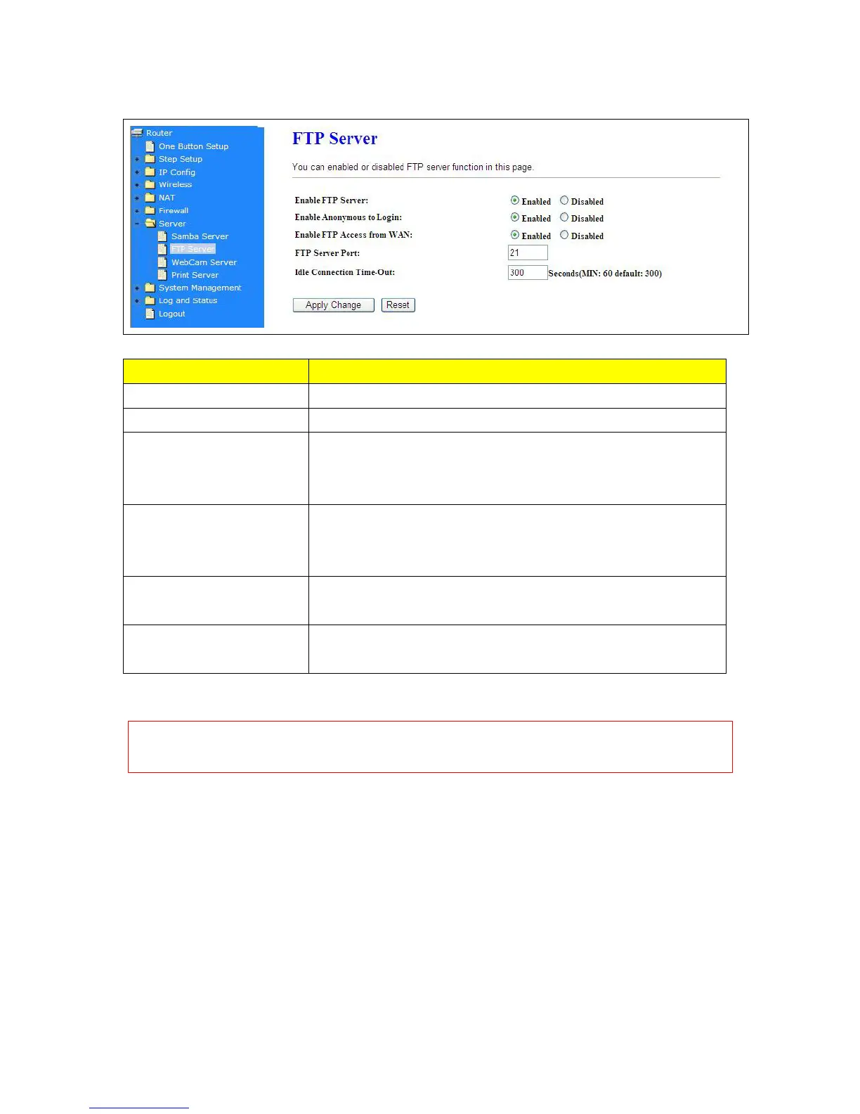 Note:FTP server is compatible with FAT32 or EXT3 format USB storage device. In case you need to