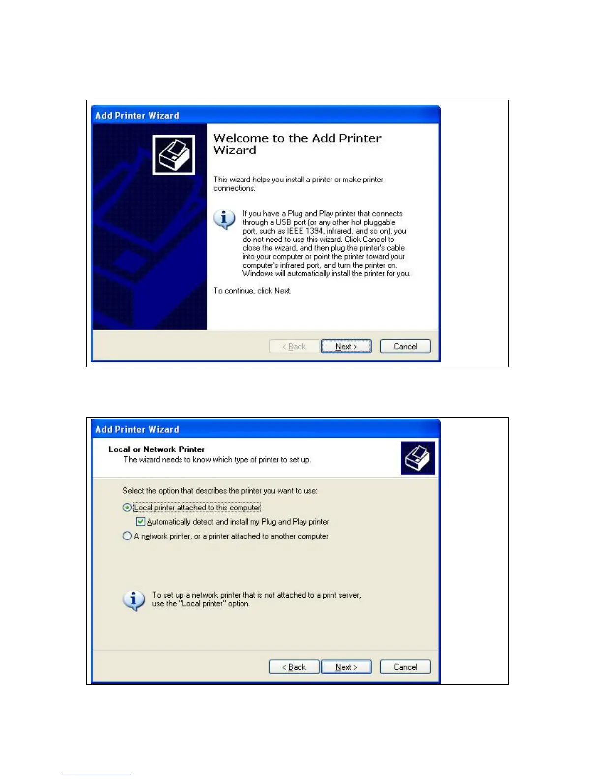 Click the “Local printer attached to this computer”, and then clickNext”.
