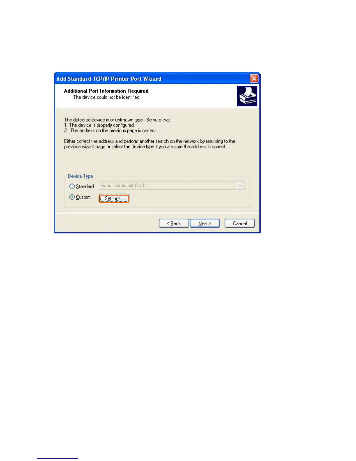 Select the “Custom” and click the “Settings”, and then clickNext”.