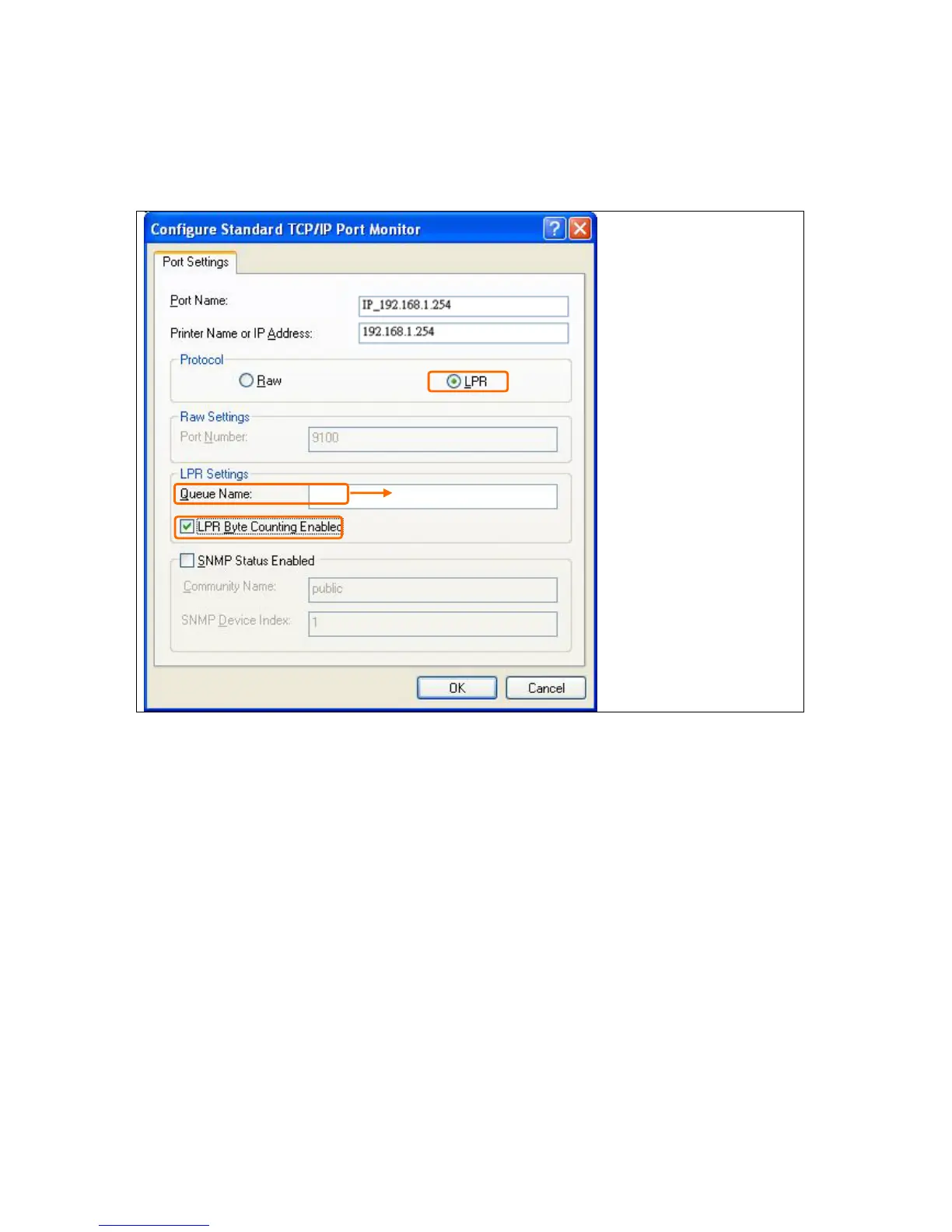Select “LPR” and give it the same “Queue Name” as USB Printer Name as shown, and mark “LPR