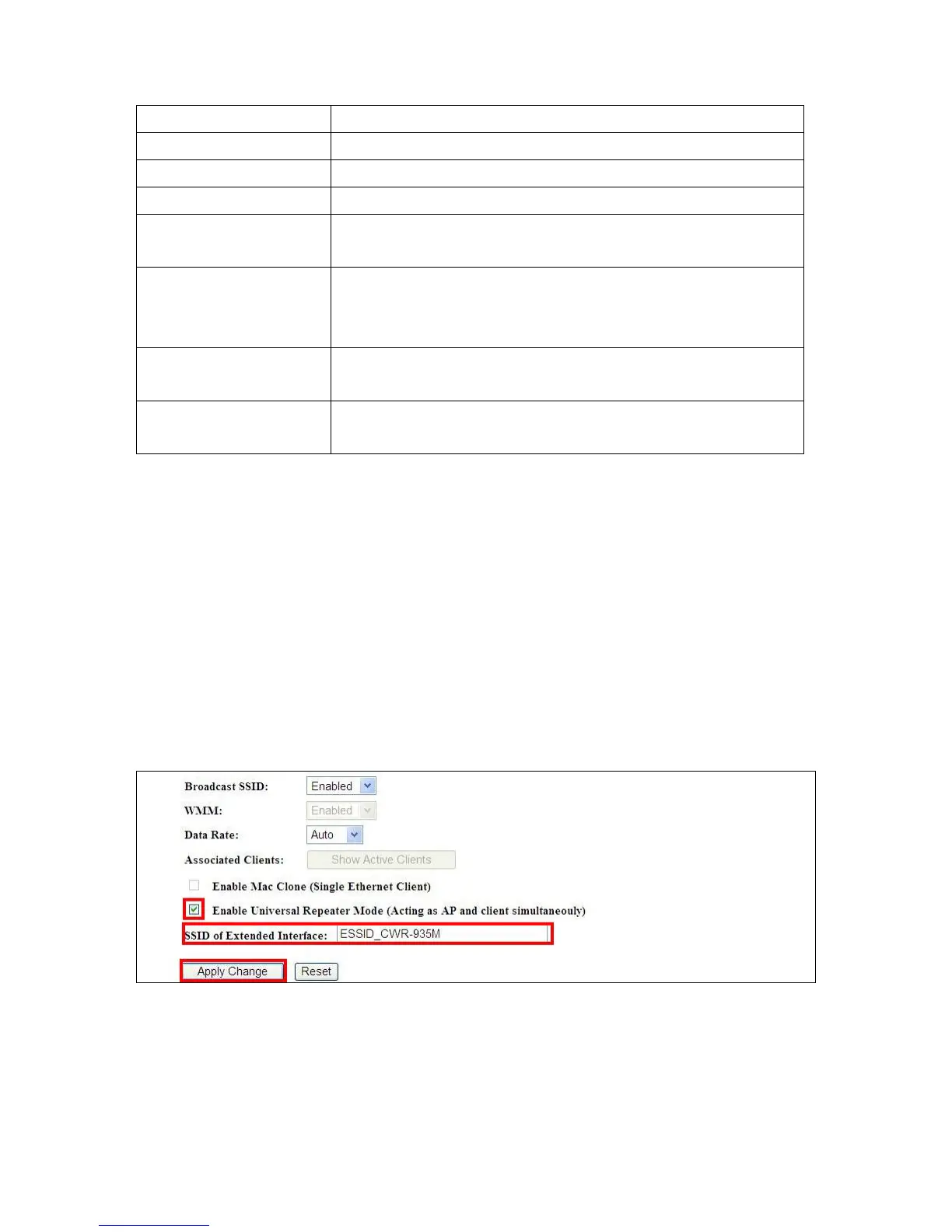 the channel and SSID of the upper level device on router’s GUI. Click on Apply Changes to save
