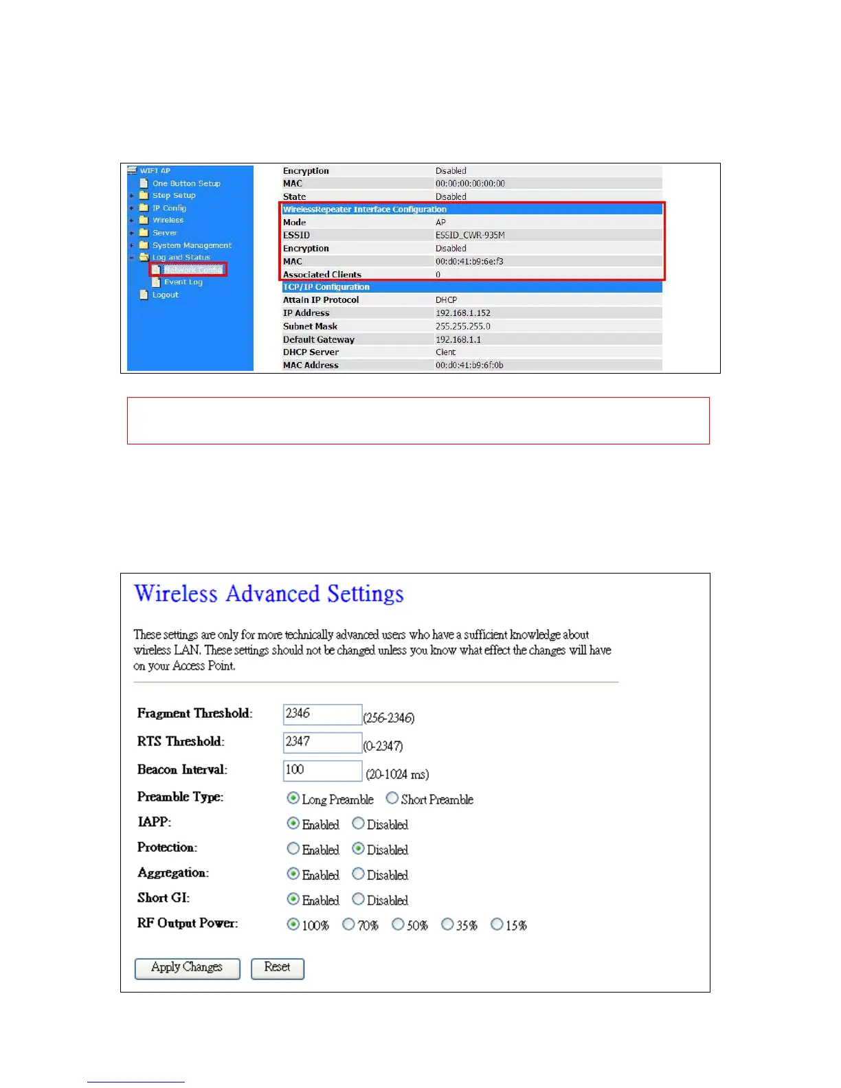 Users can go to the network Config section and check the information of upper level in Wireless