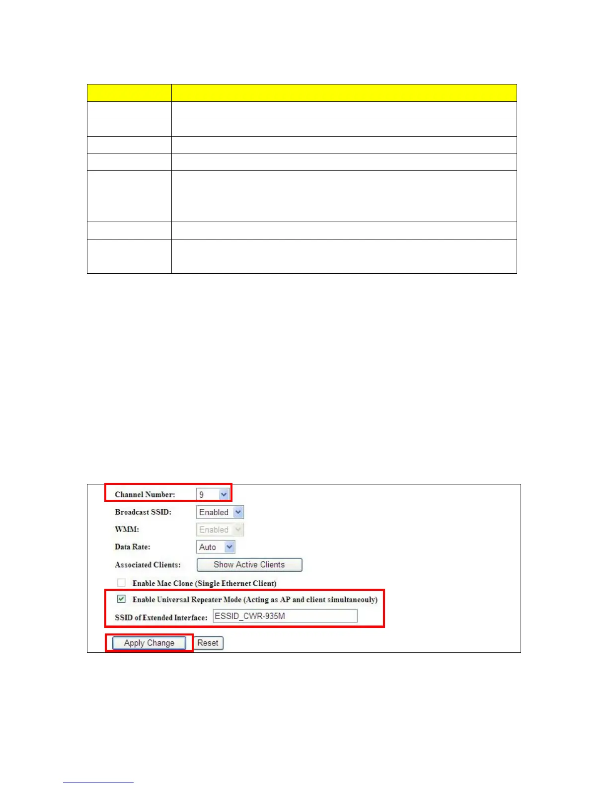 input the channel and SSID of the upper level device on router’s GUI. Click on Apply