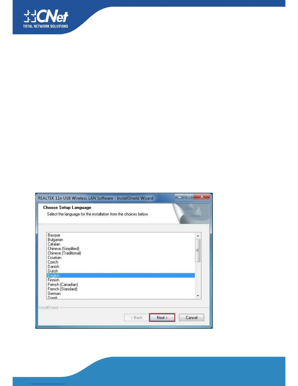 Insert the software program WNUD1150 CD, then auto installation window pops up on follow-