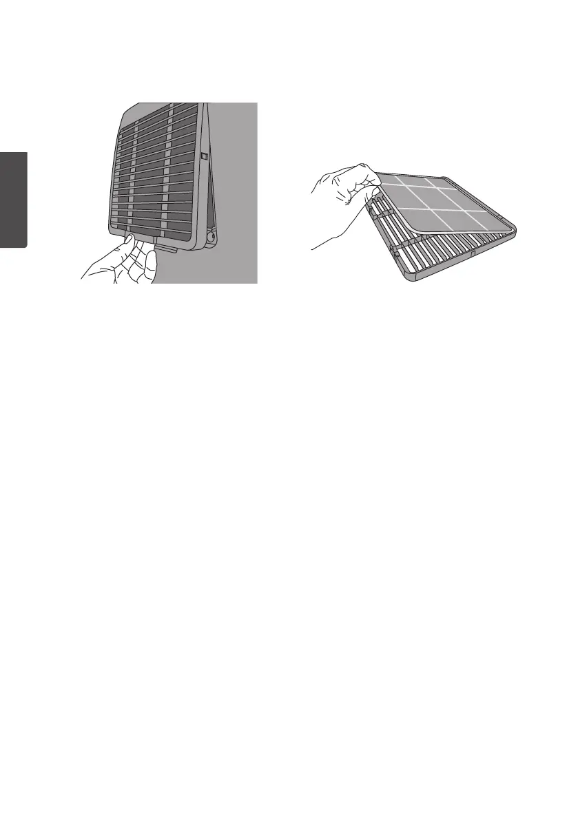 Montera luftfiltret på gallret och sätt tillbaka gallret på luftavfuktaren.
