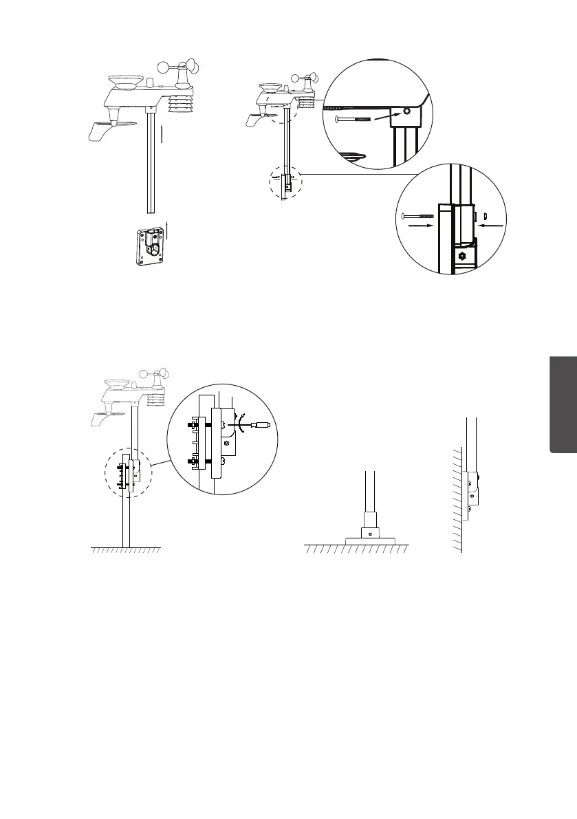 3. Työnnä yhteen ulkoyksikkö, varsi ja kiinnike ja ruuvaa ne kiinni ruuvilla ja