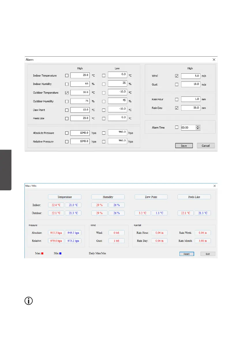 Aseta hälytysrajat ja aktivoi/sammuta hälytys. Teehaluamasi asetukset ja