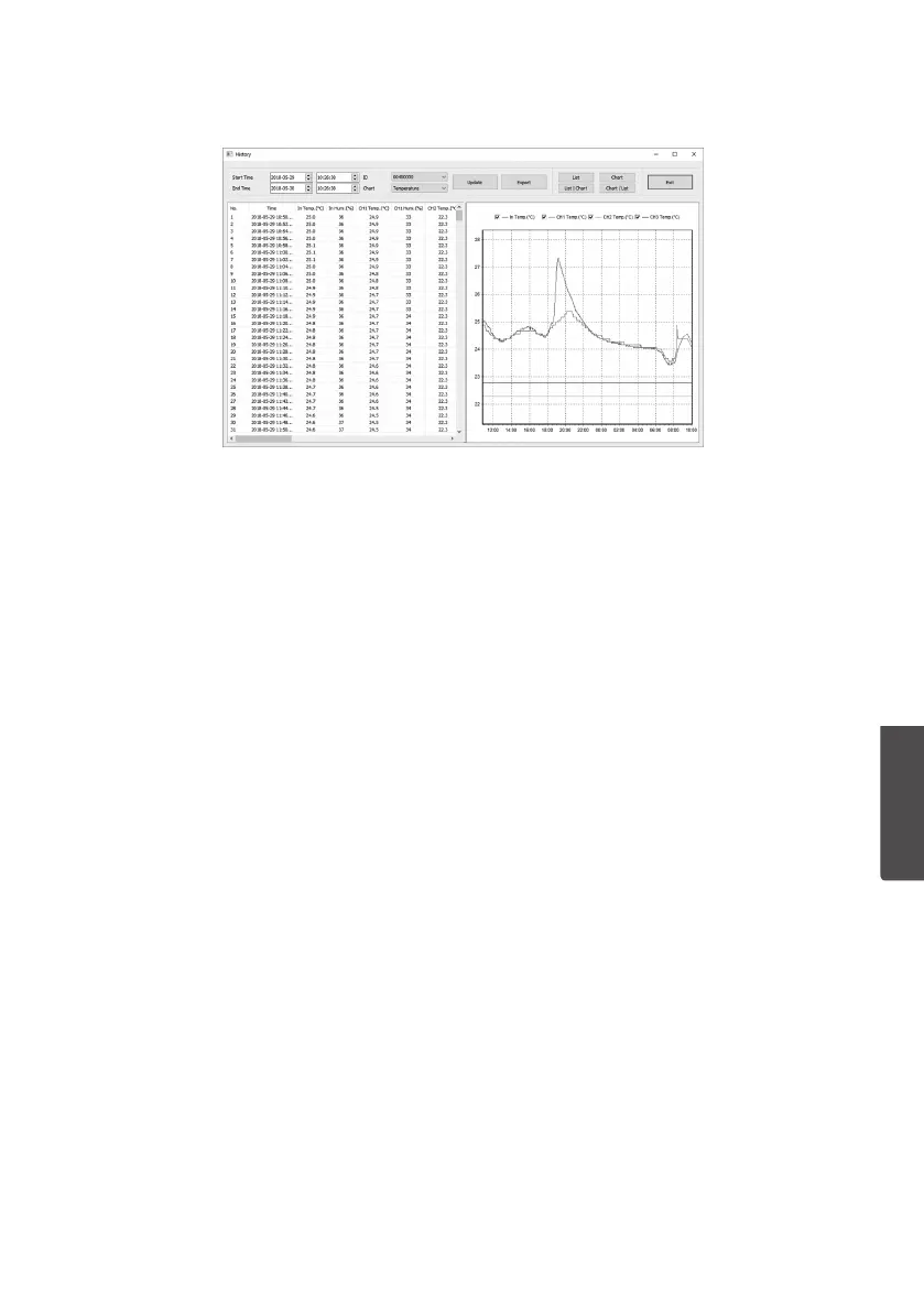- Den Typ der Messdaten auswählen, angezeigt werden soll (Chart): Temperatur,