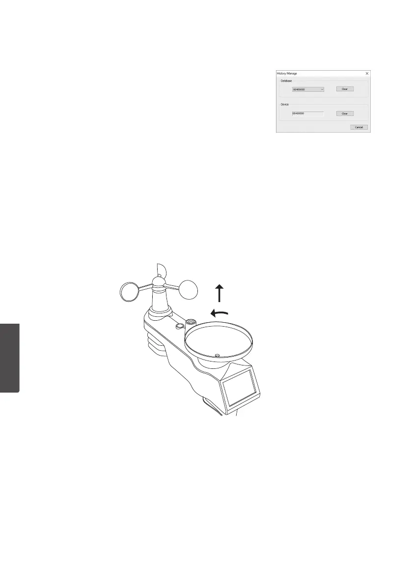 • Den Regenauffangbehälter in Pfeilrichtung drehen und dann gerade nach