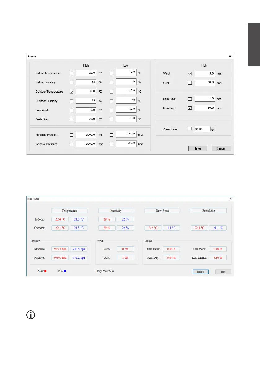 Set thealarm limits and activate/deactivate thealarm. Makeany desired changes and