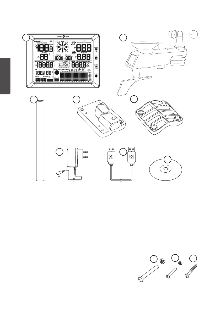 9. Skruv och mutter (M5) till fäste vid rörmontage